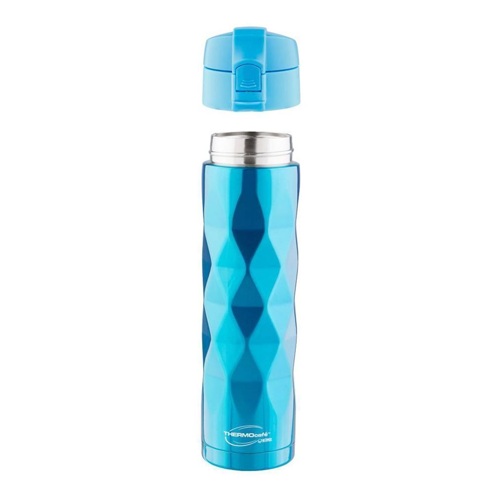Необычный рельефный 3D термос ThermoCafe Blue TTF-503-B покрыт множеством выпуклых ромбов. Термос выполнен из нержавеющей стали. Пластиковая крышка-пробка снабжена фиксатором от случайного открытия, откидывается полностью и фиксируется, поэтому его удобно использовать в движении. Он также подходит для автомобильных держателей Термос держит тепло 8 часов, холод – 12 часов. Термос станет замечательным спутником и компаньоном активному человеку, предпочитающему практичность и высокое качество во всем.