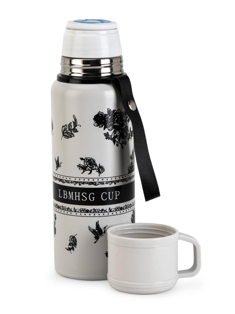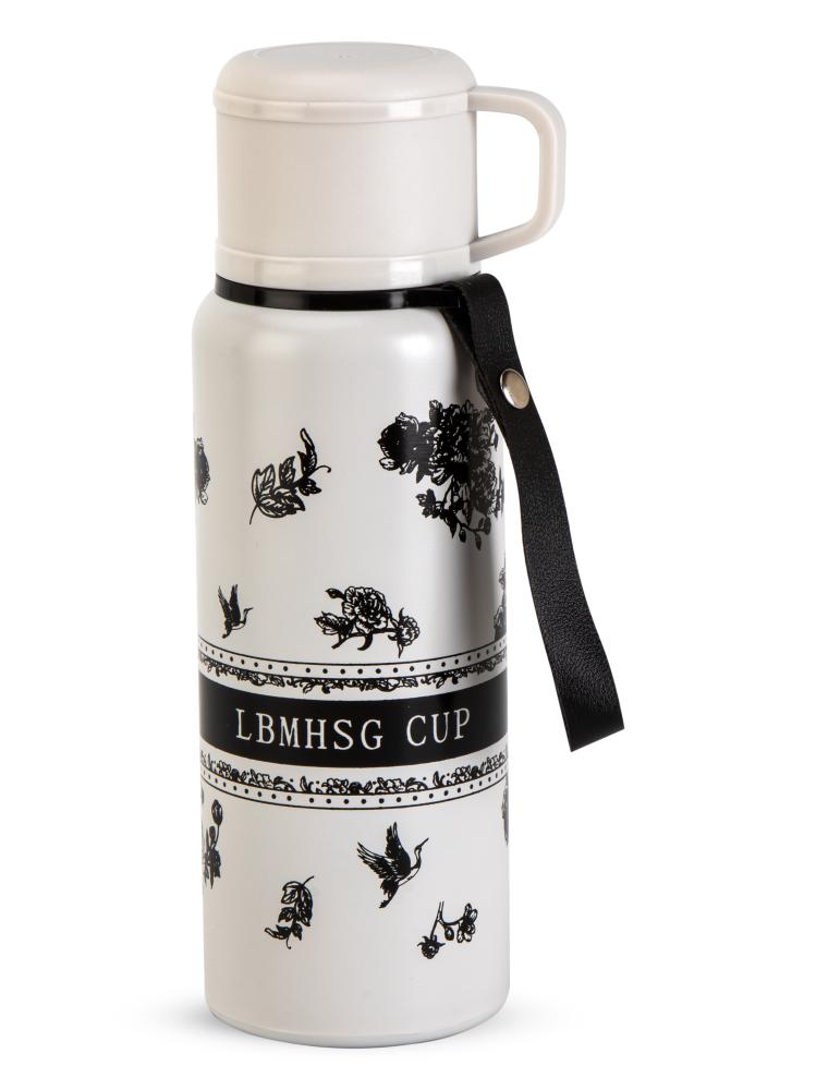 Термос 600мл ST с клапаном цветы белый нержавеющая сталь