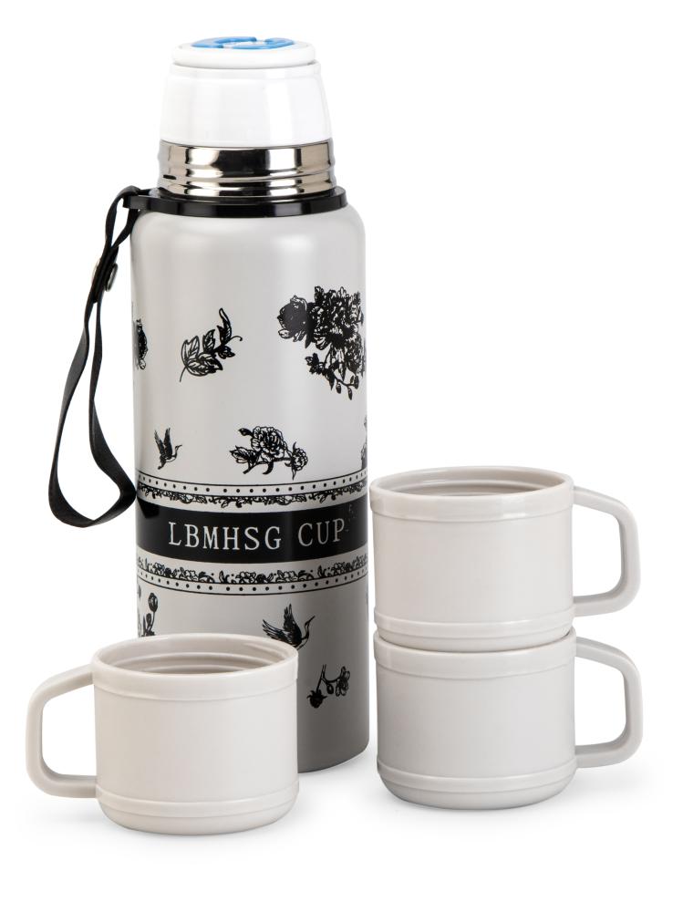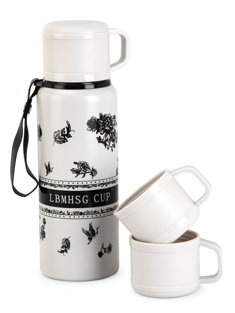 Термос 600мл ST с клапаном с 2мя кружками белый нержавеющая сталь