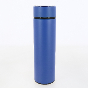 Термос 500мл с индикатором температуры матовое покрытие синий нержавеющая сталь