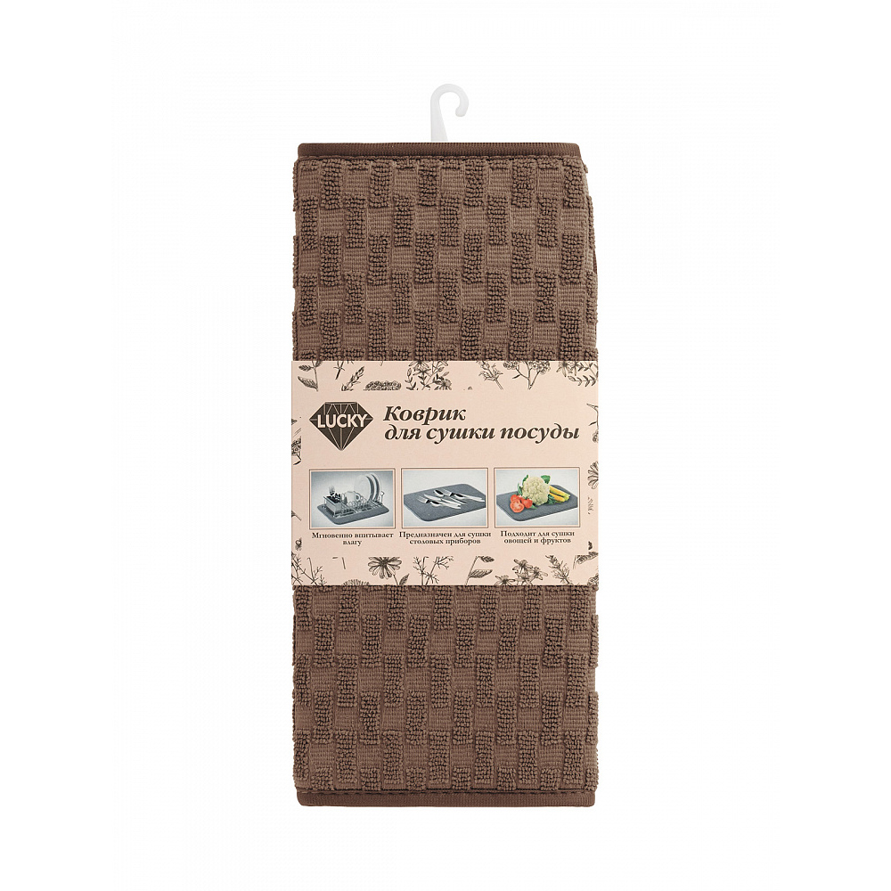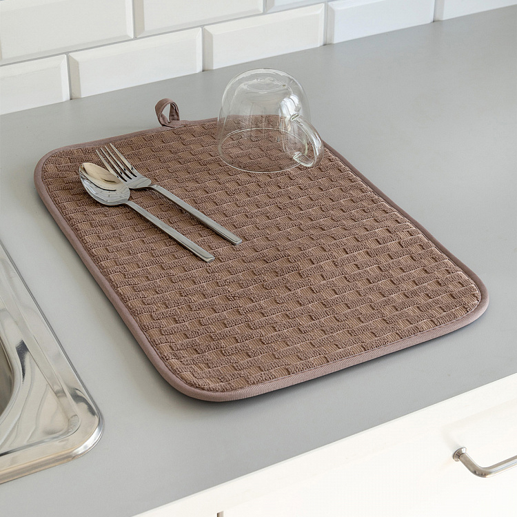 Коврик для сушки посуды 45х32см LUCKY Шашечки коричневый микрофибра полиэстер