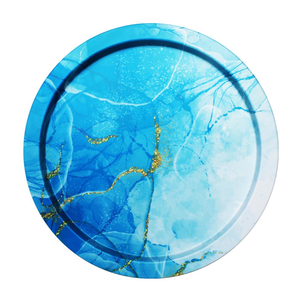 Поднос десертный 31,4см НИКИС Голубой мрамор металл