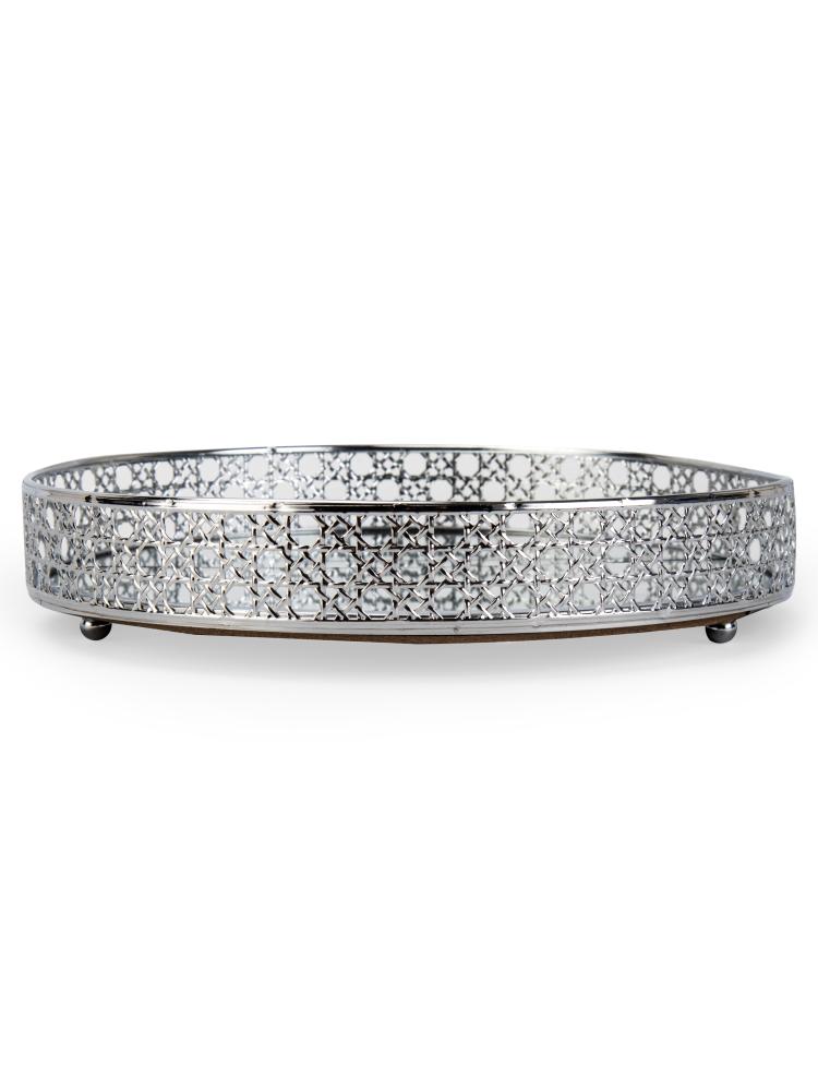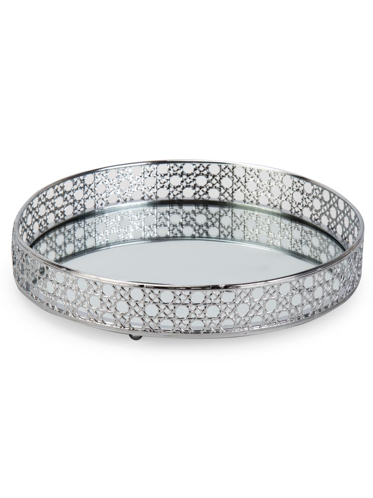 Поднос декоративный 20см круглый серебро металл с зеркалом