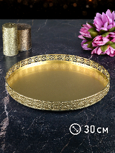Поднос сервировочный 29,5х4см на ножках золото металл