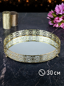 Поднос сервировочный 30х6,5см золото металл/стекло