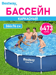 Бассейн каркасный 366х76см 6473л BESTWAY SteelPro с фильтр-насосом