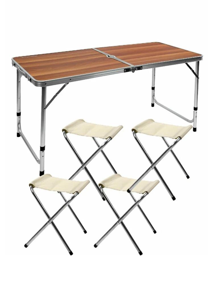 Стол складной со стульями 4шт 120х60х70см / 27,5х32х35см коричневый металл
