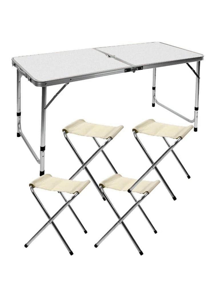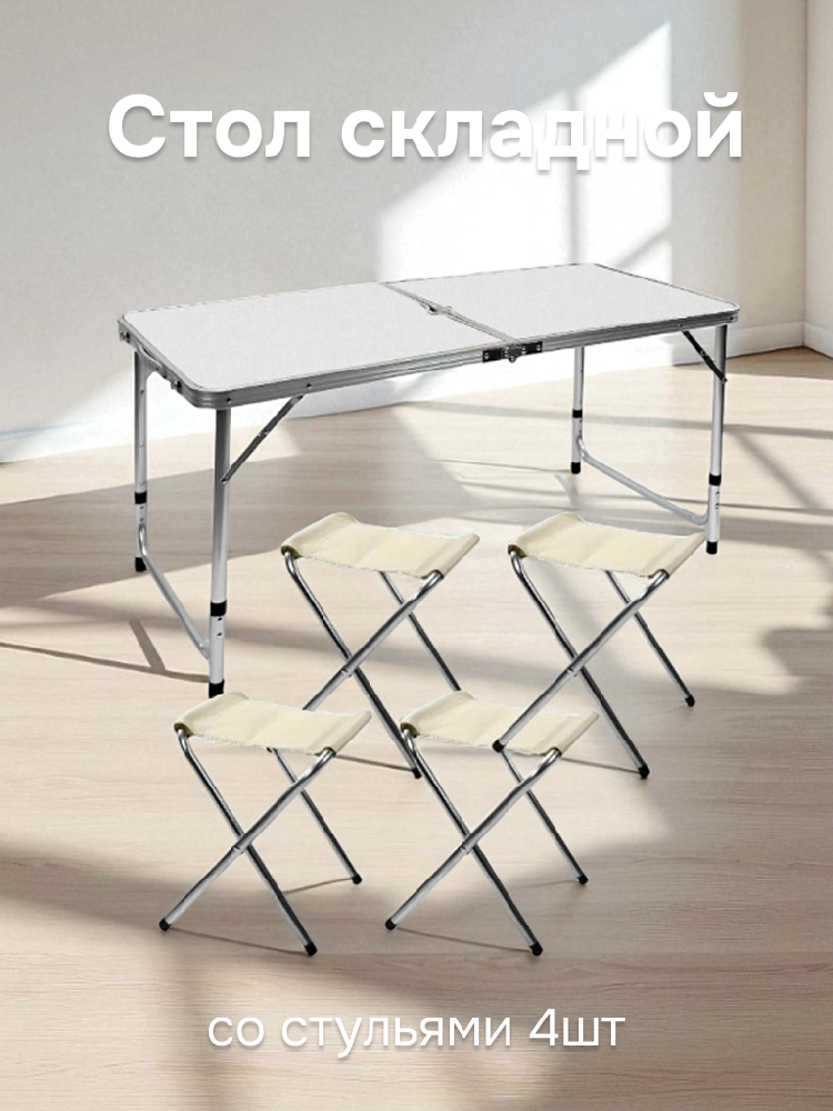 Стол складной со стульями 4шт 120х60х70см / 27,5х32х35см белый металл