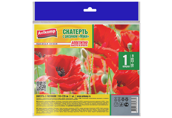 Одноразовая скатерть 110х220см AVIKOMP маки пласт ПСД