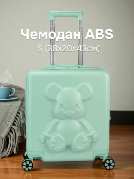 Чемодан на колесах S (38х20х43см) мишка мятный ABS