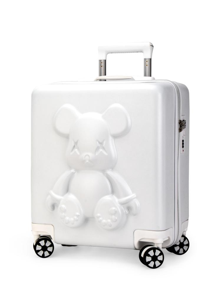 Чемодан на колесах S (38х20х43см) мишка белый ABS