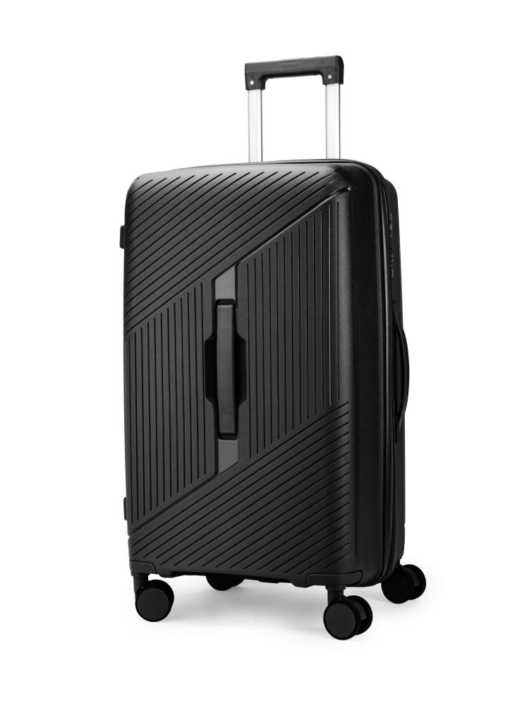 Чемодан на колесах L (48х30х75см) полосы черный PP