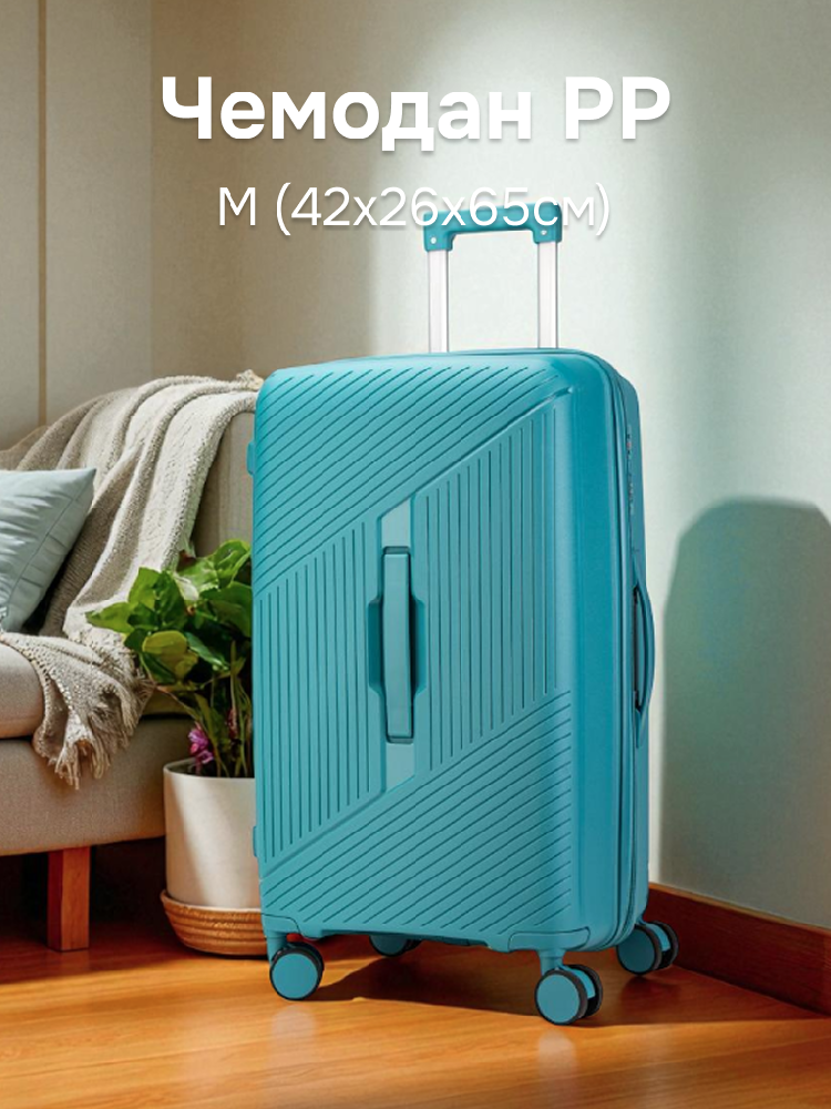 Чемодан на колесах M (42х26х65см) полосы индиго PP