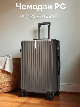 Чемодан на колесах M (42х26х65см) грани графит PC