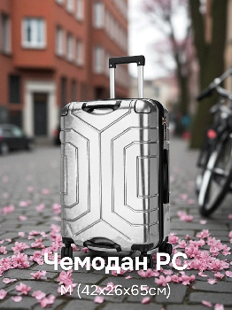 Чемодан на колесах M (42х26х65см) соты серебро PC
