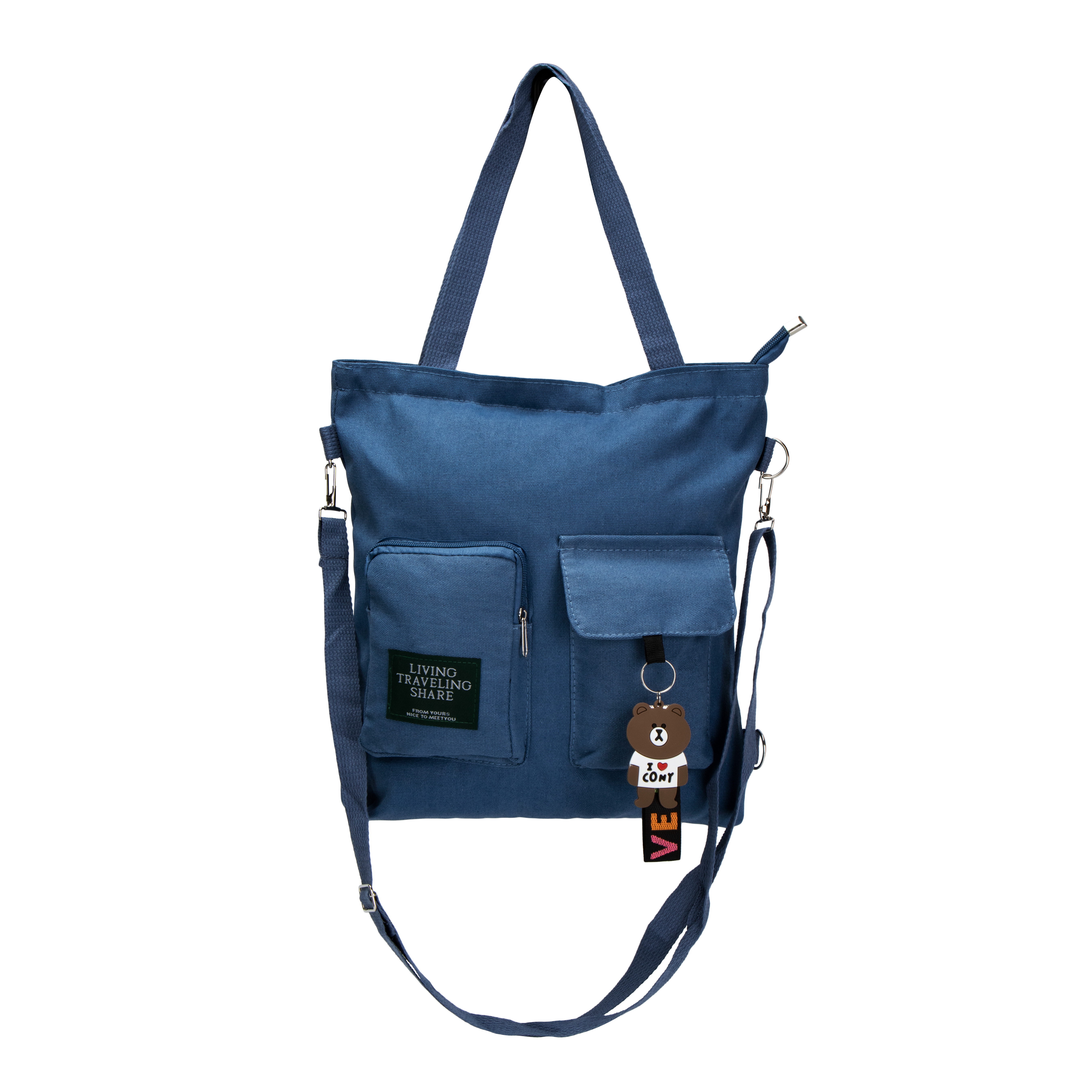 Сумка-шоппер с брелком (холст) 38х33х5см синий поликотон