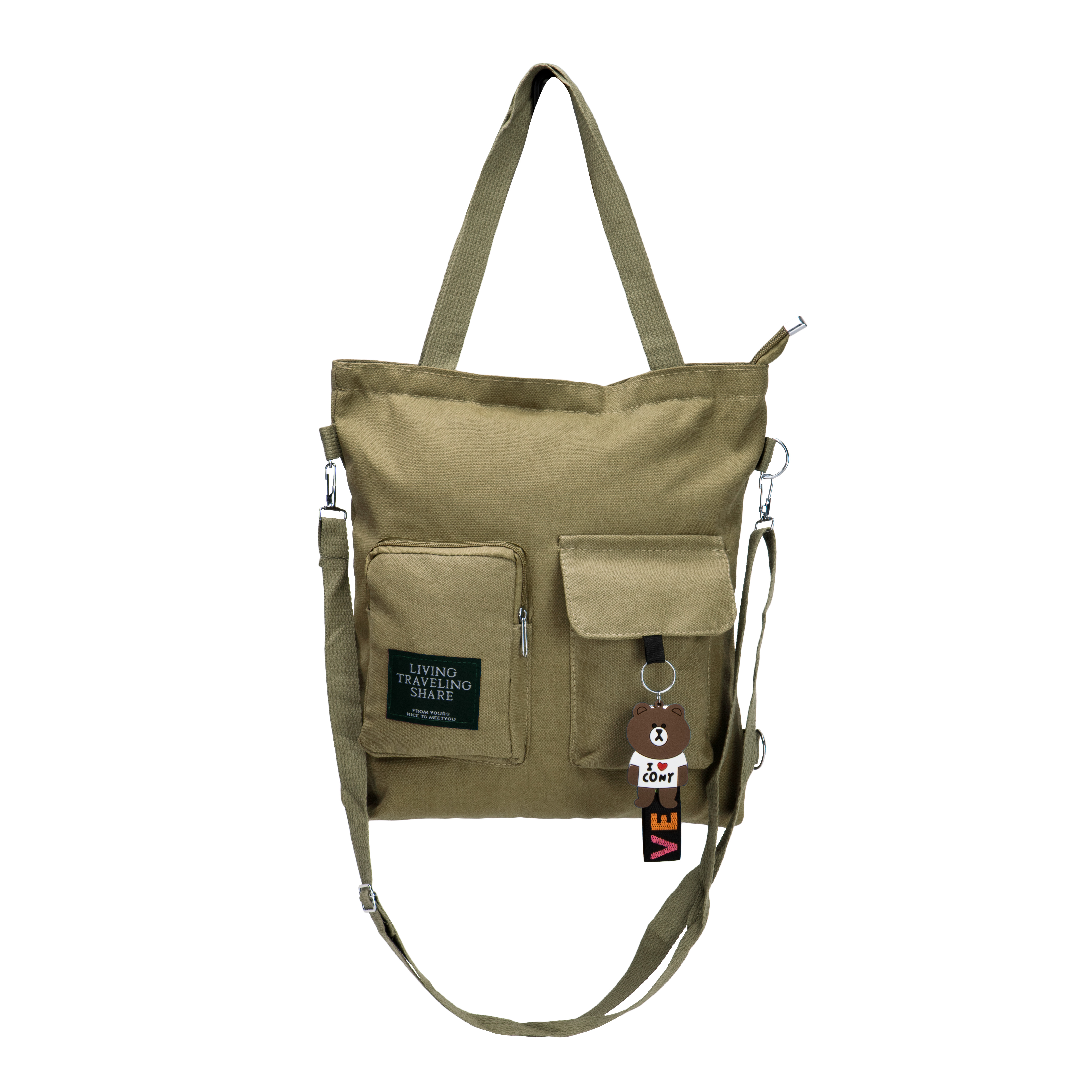 Сумка-шоппер с брелком (холст) 38х33х5см бежевый поликотон
