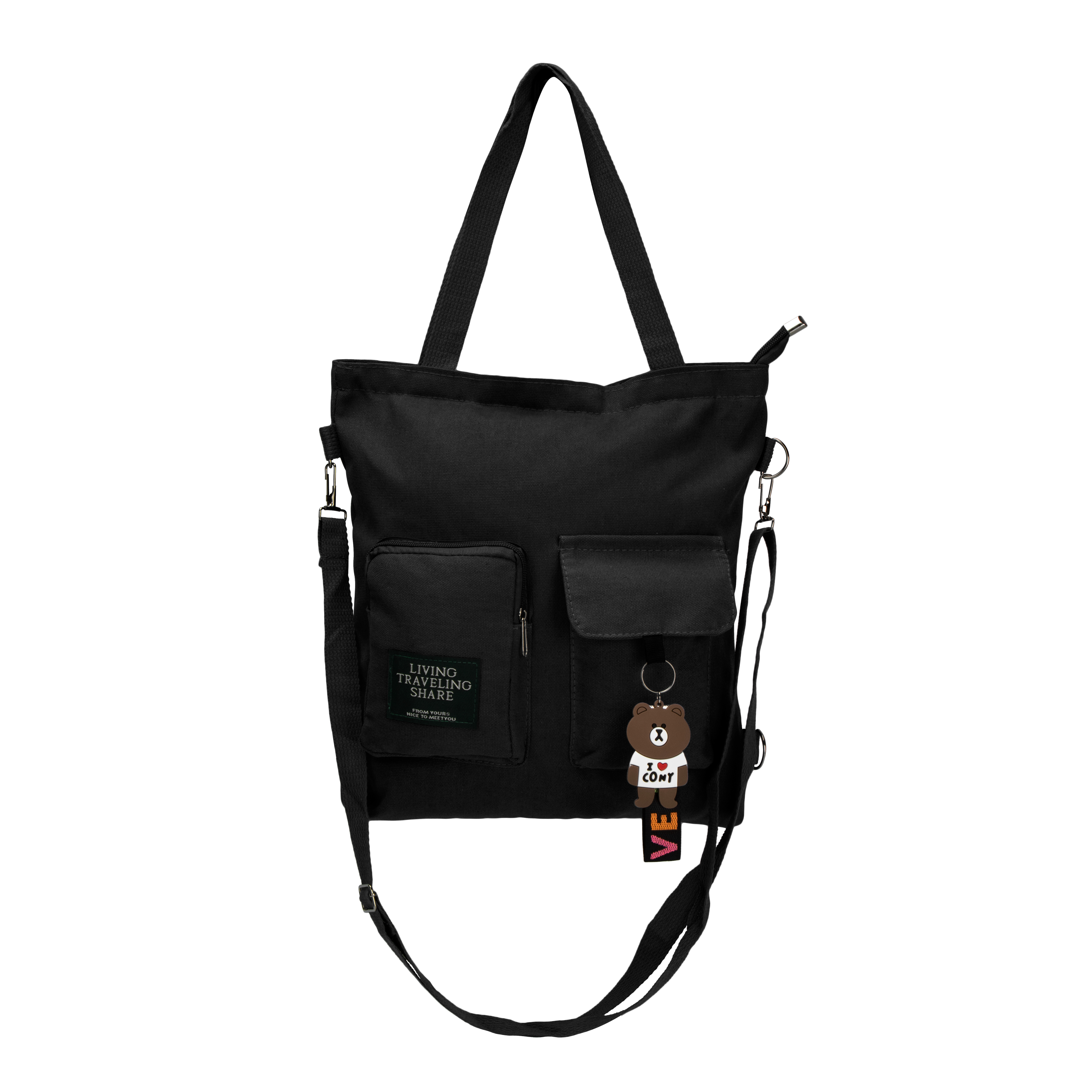 Сумка-шоппер с брелком (холст) 38х33х5см черный поликотон