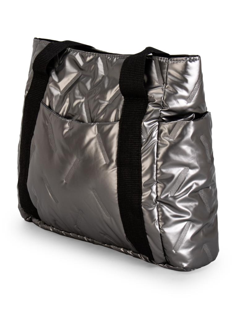 Сумка шоппер 35х11х29см стеганная с боковыми карманами графит полиэстер