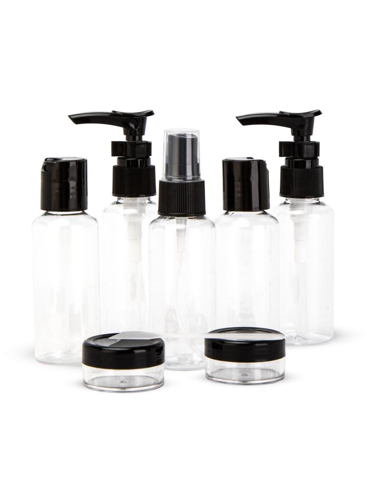 Набор флаконов дорожный 7шт 10мл/50мл черный пластик