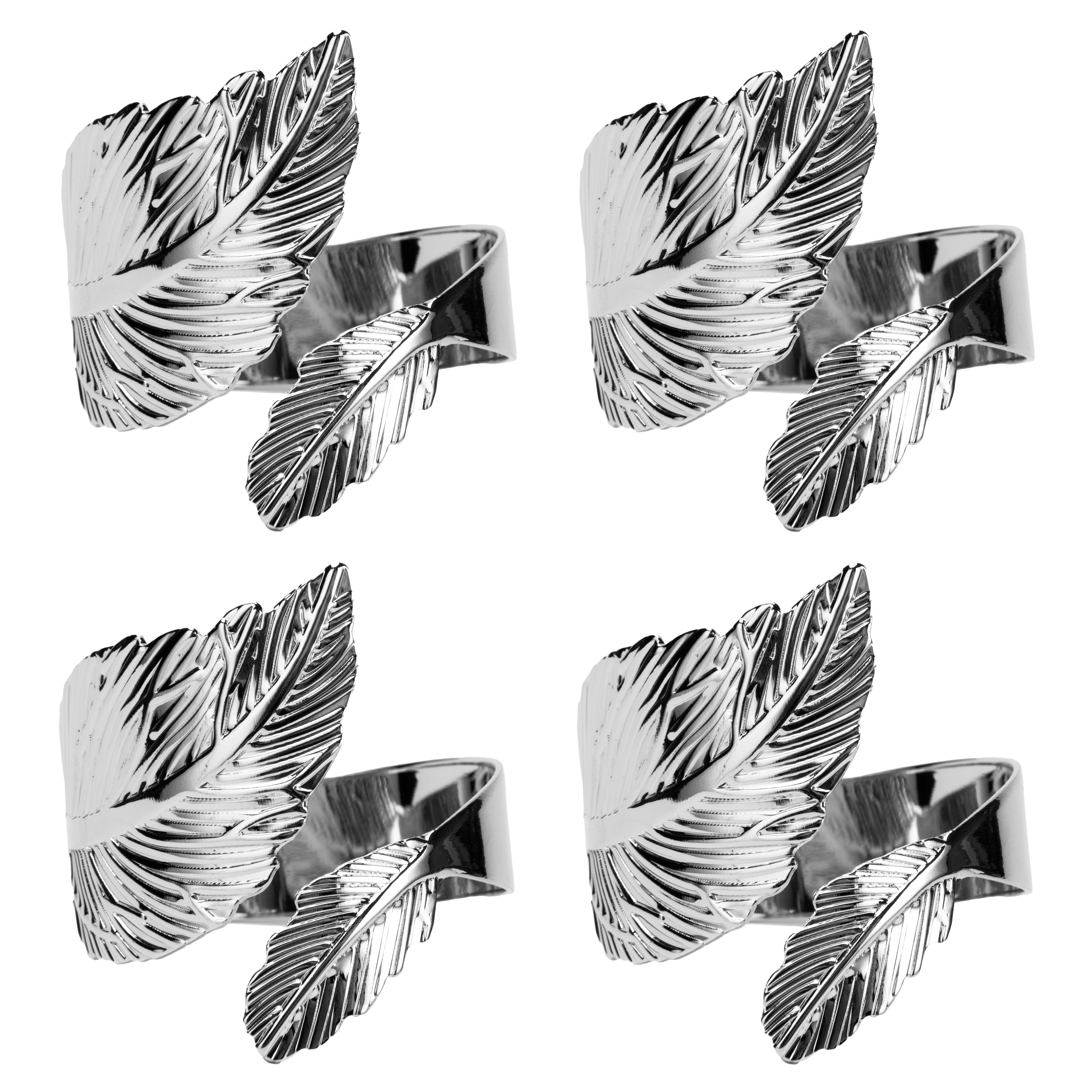 Набор колец для салфеток 4шт Лист серебро