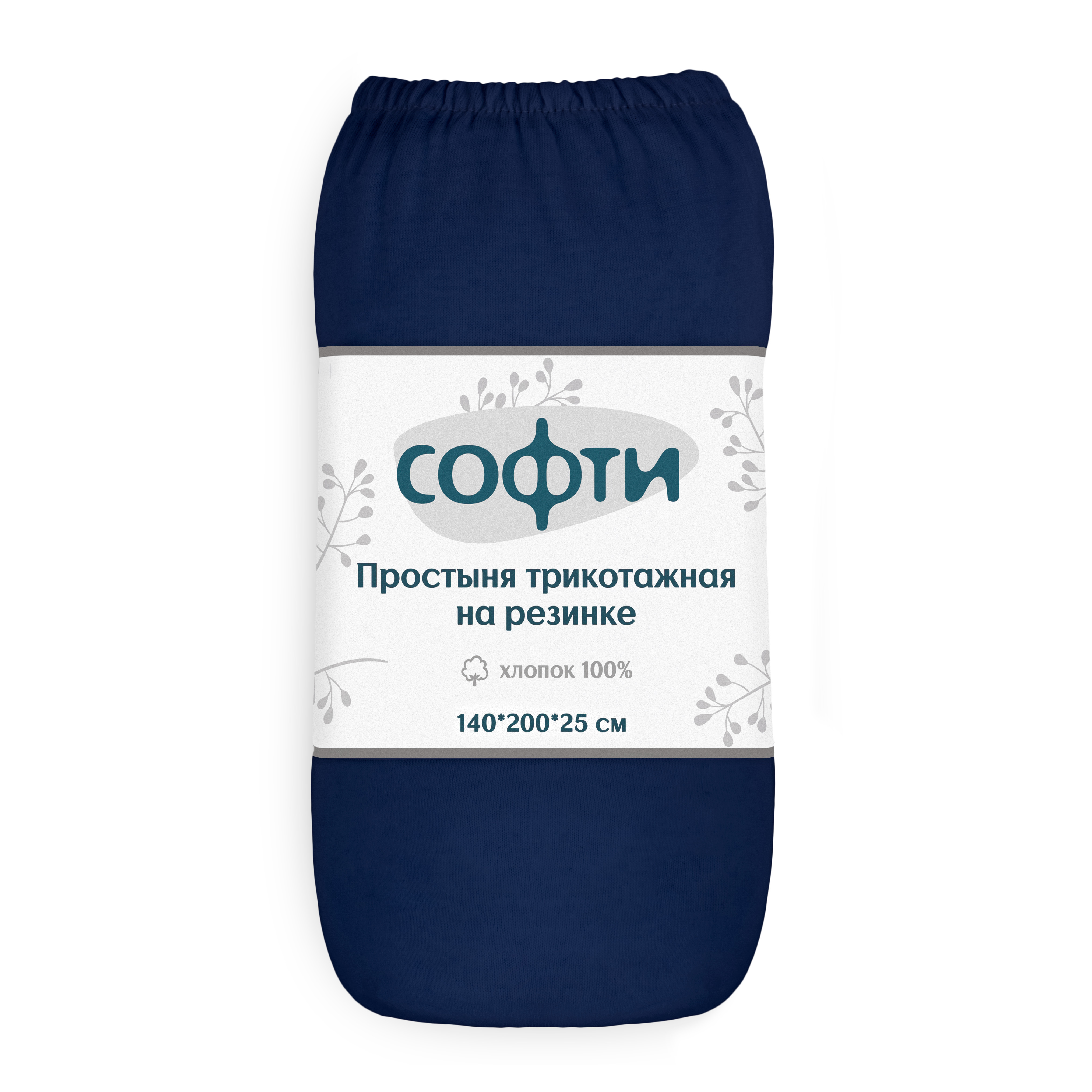 Простыня трикотажная на резинке 140х200х25см СОФТИ индиго хлопок 100%