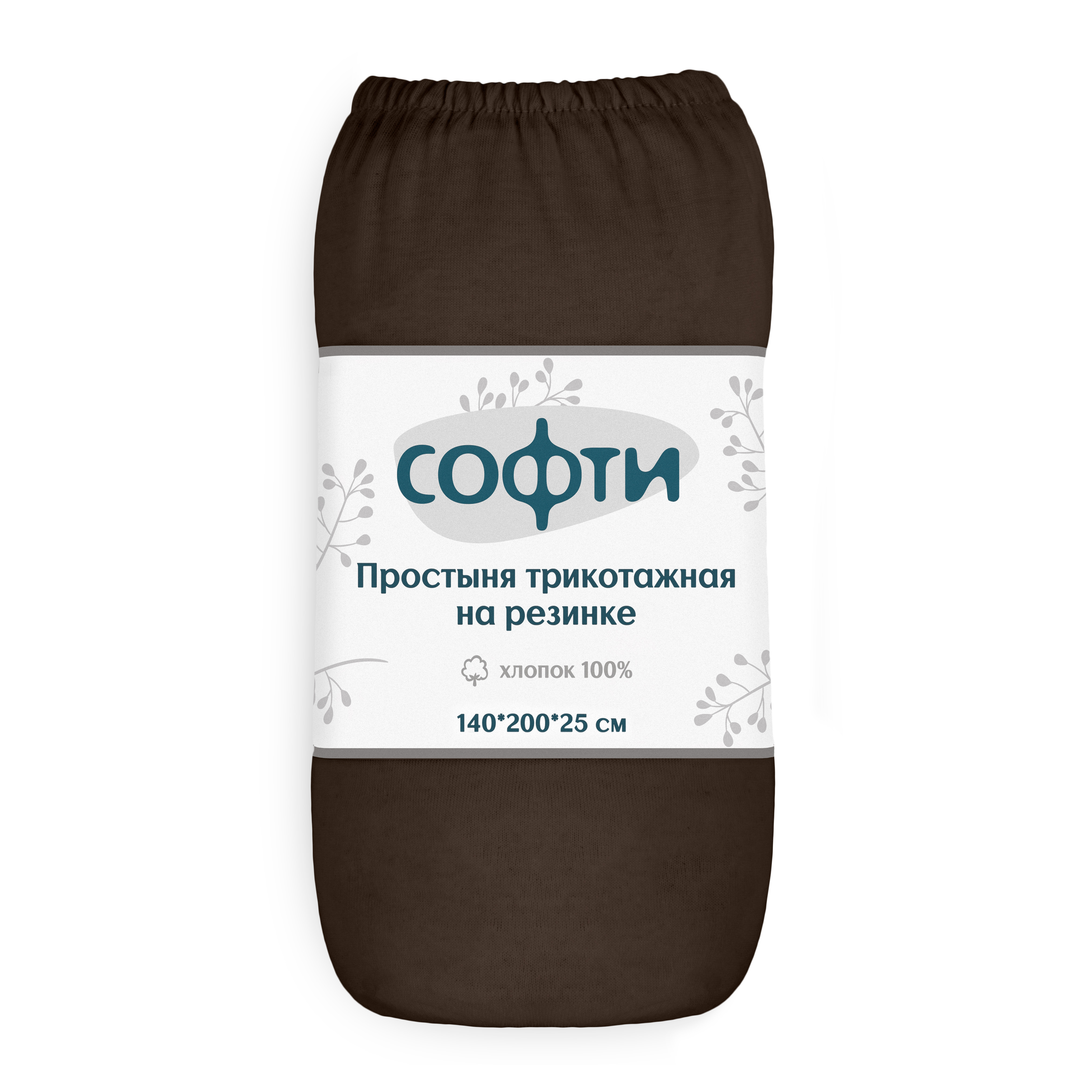 Простыня трикотажная на резинке 140х200х25см СОФТИ шоколад хлопок 100%