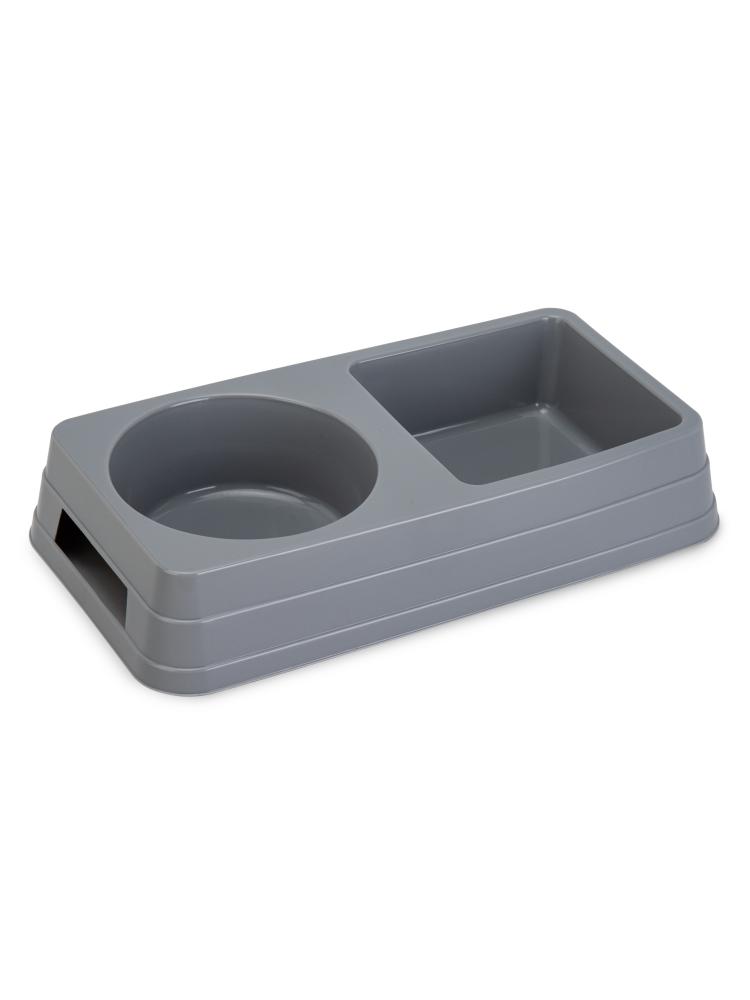 Миска для животных 0,8л (0,45л+0,36л) LUCKY PET двойная серый пластик