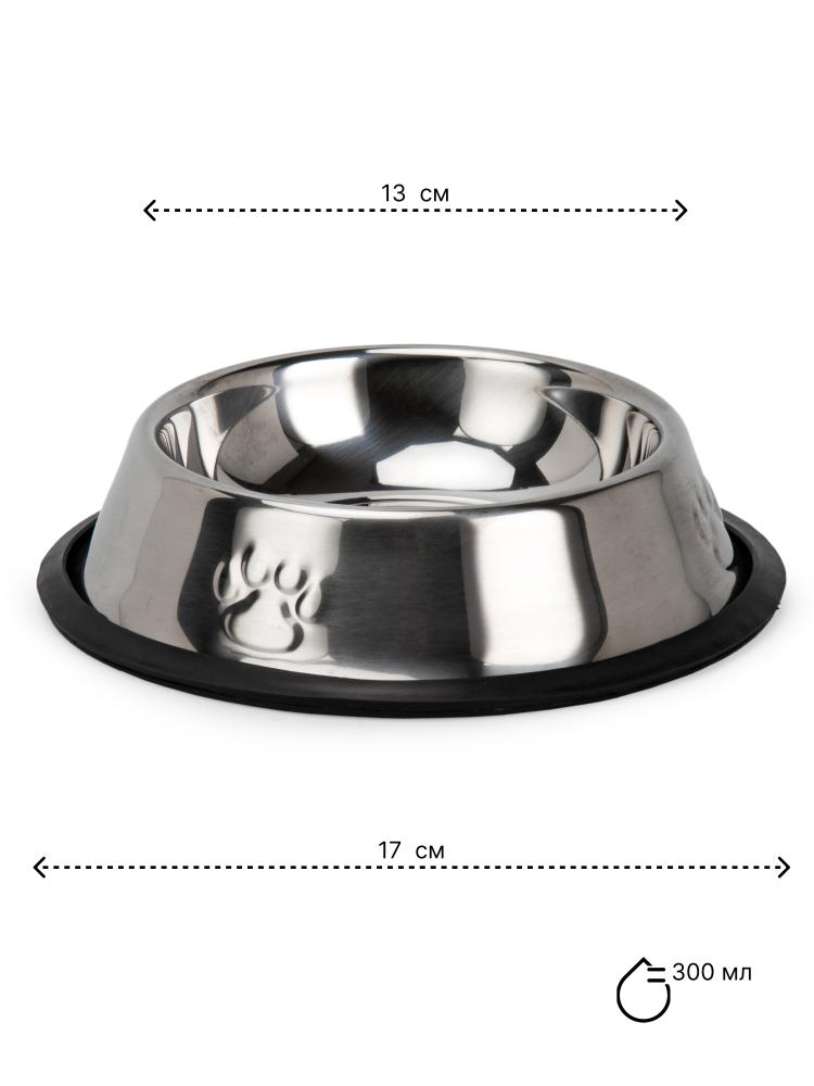 Миска для животных 300мл 13х17см одинарная цельнолитая нержавеющая сталь