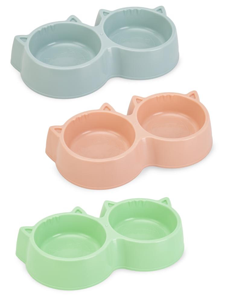 Миска для животных 23х10см двойная КИТТИ в ассортименте полипропилен