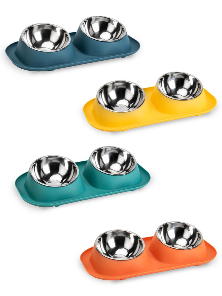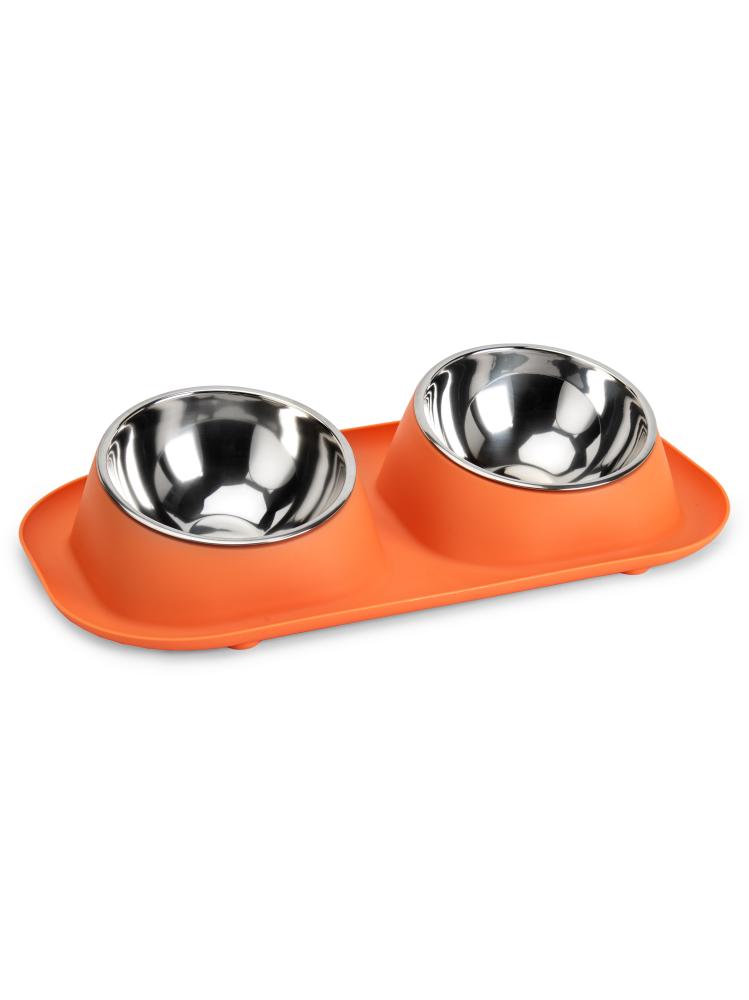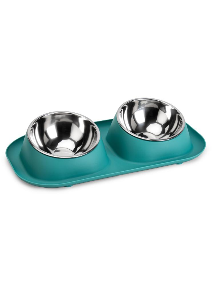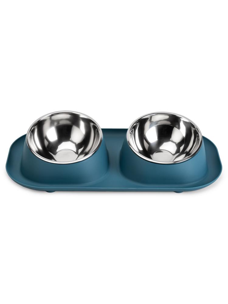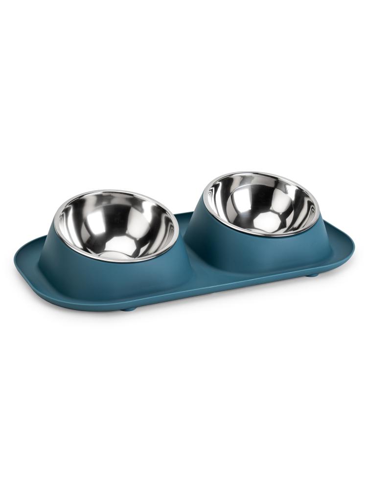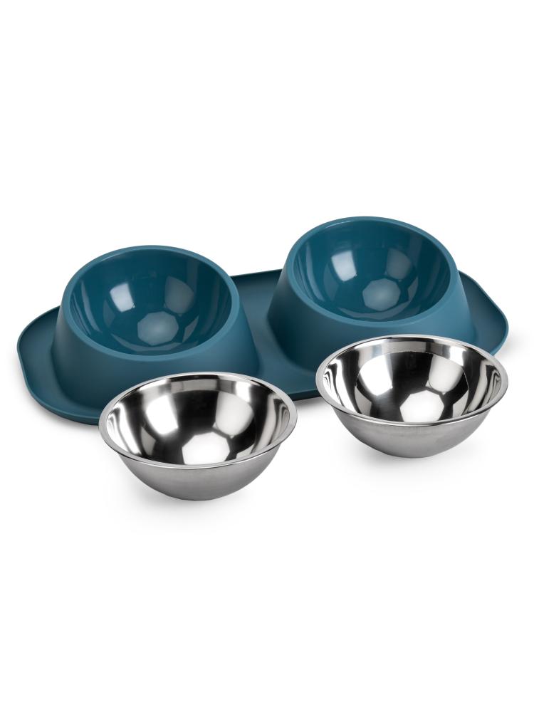 Миска для животных41х22х8,5смдвойная со съемными чашами mix ПП/нержавеющая сталь