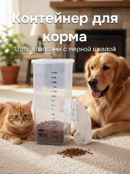 Контейнер для корма для животных 1,8л с клипсами с мерной шкалой полипропилен