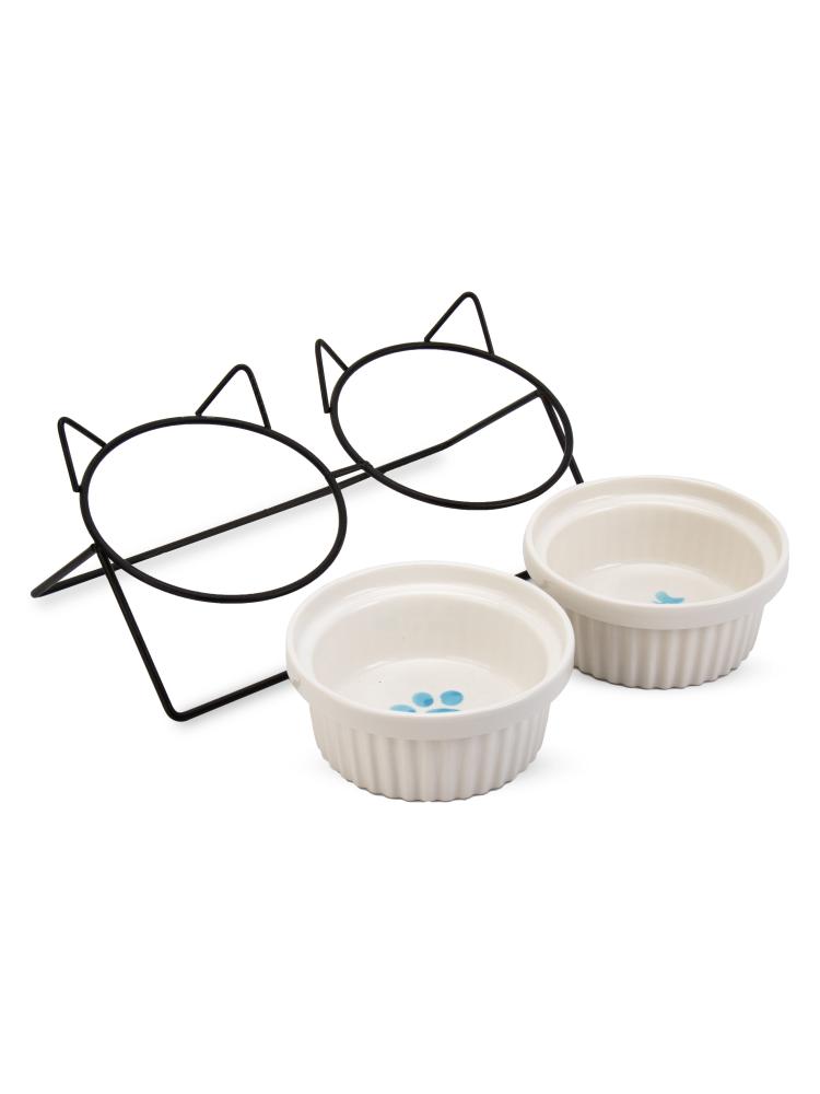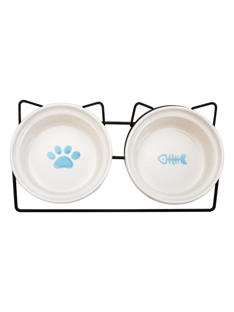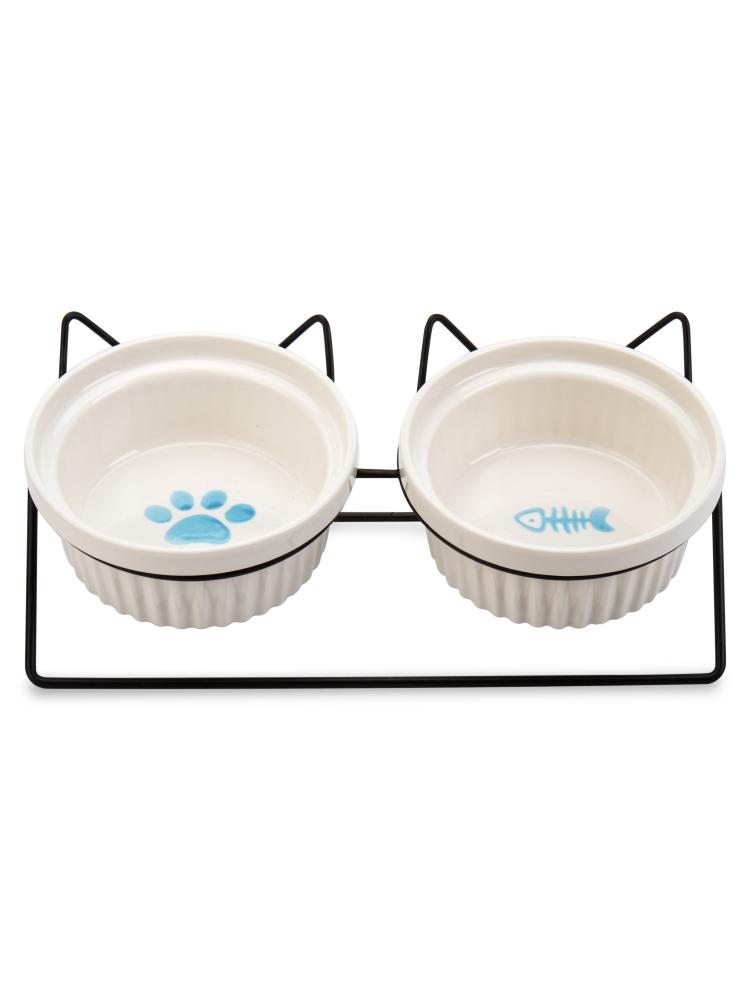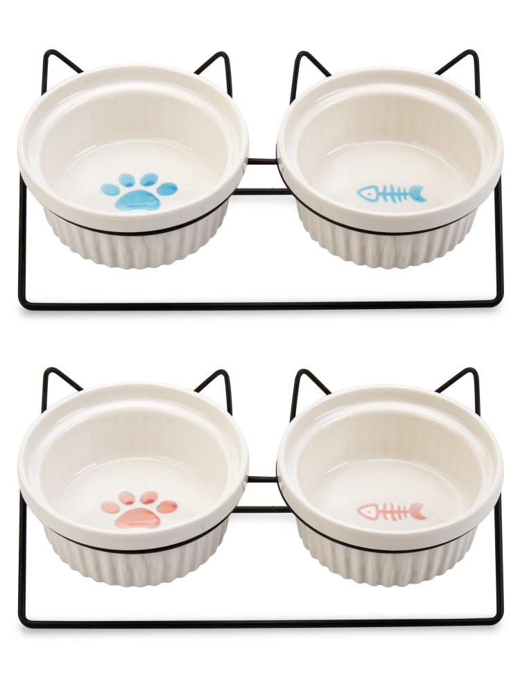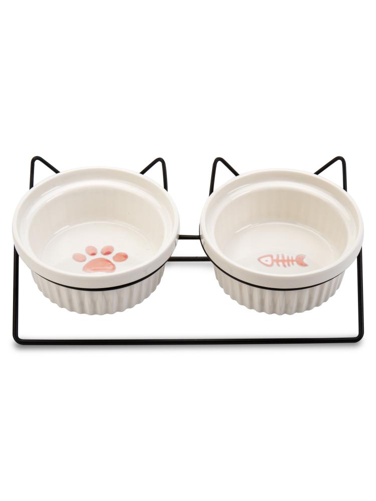 Миска для животных 300мл двойная на подставке ЛАПКИ в ассортименте керамика/металл