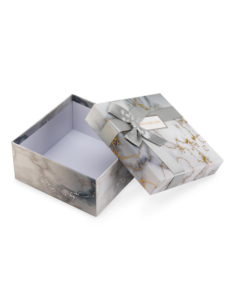 Подарочная коробка 17х17х8см МРАМОР белый картон