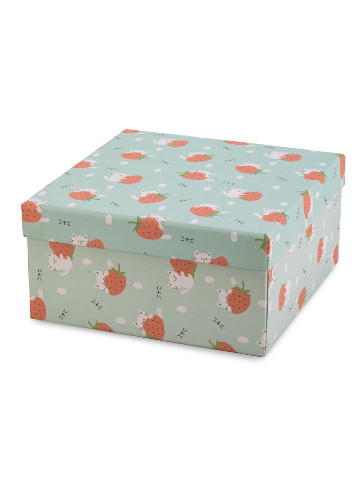 Подарочная коробка 14х14х7,5см КОТИК С КЛУБНИЧКОЙ картон