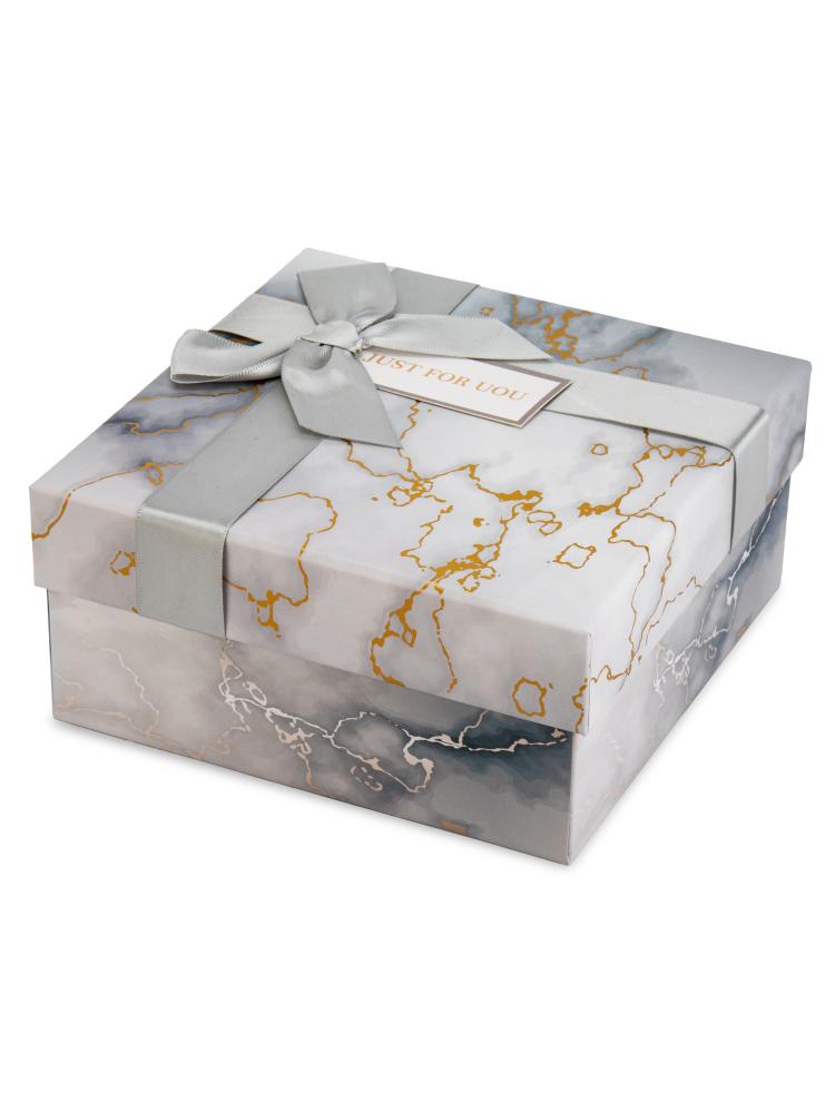 Подарочная коробка 19х19х9,5см МРАМОР белый картон