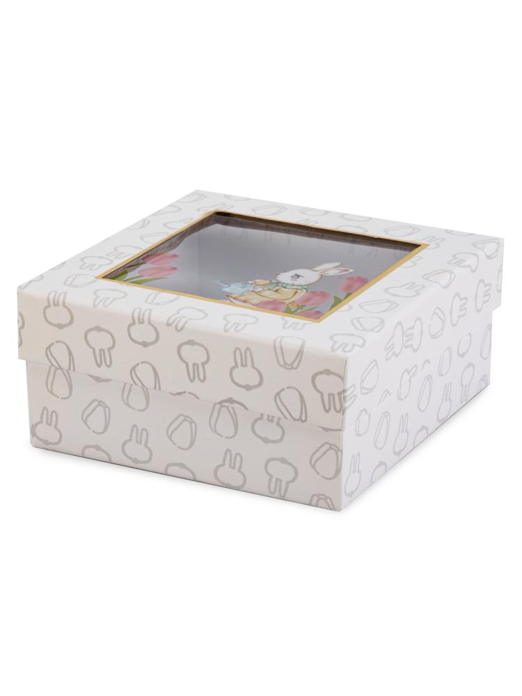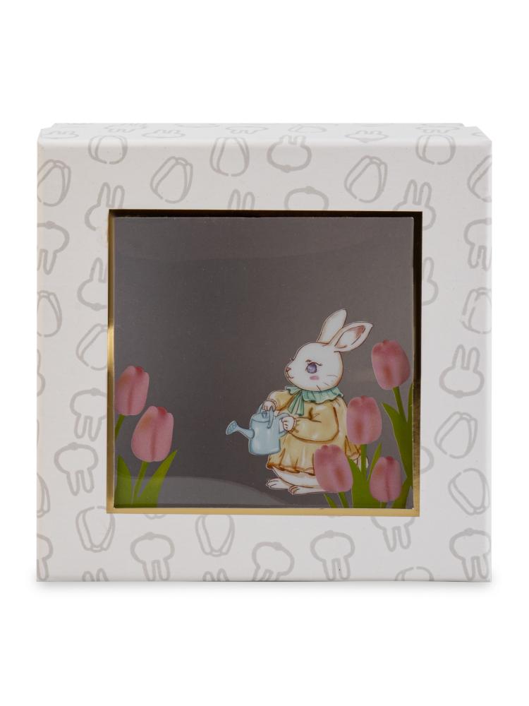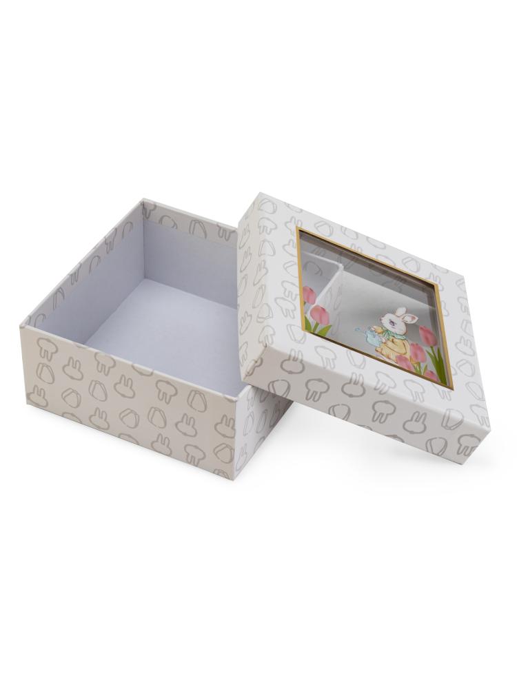 Подарочная коробка 17х17х8см ЗАЯЦ с окном белый картон