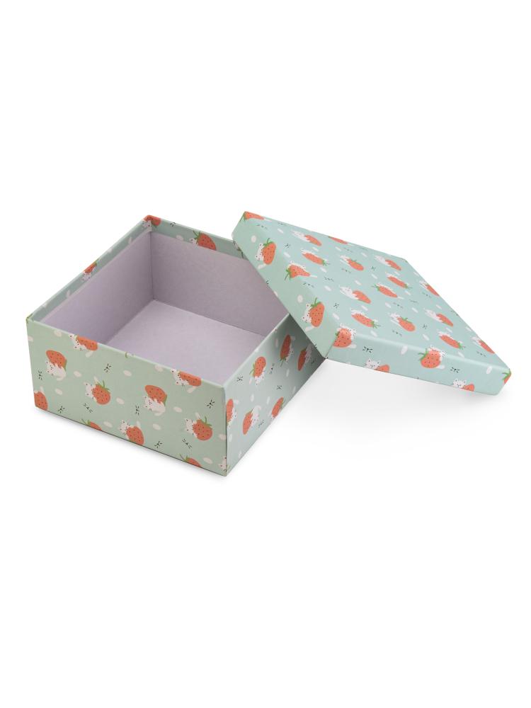 Подарочная коробка 10х10х5см КОТИК С КЛУБНИЧКОЙ картон