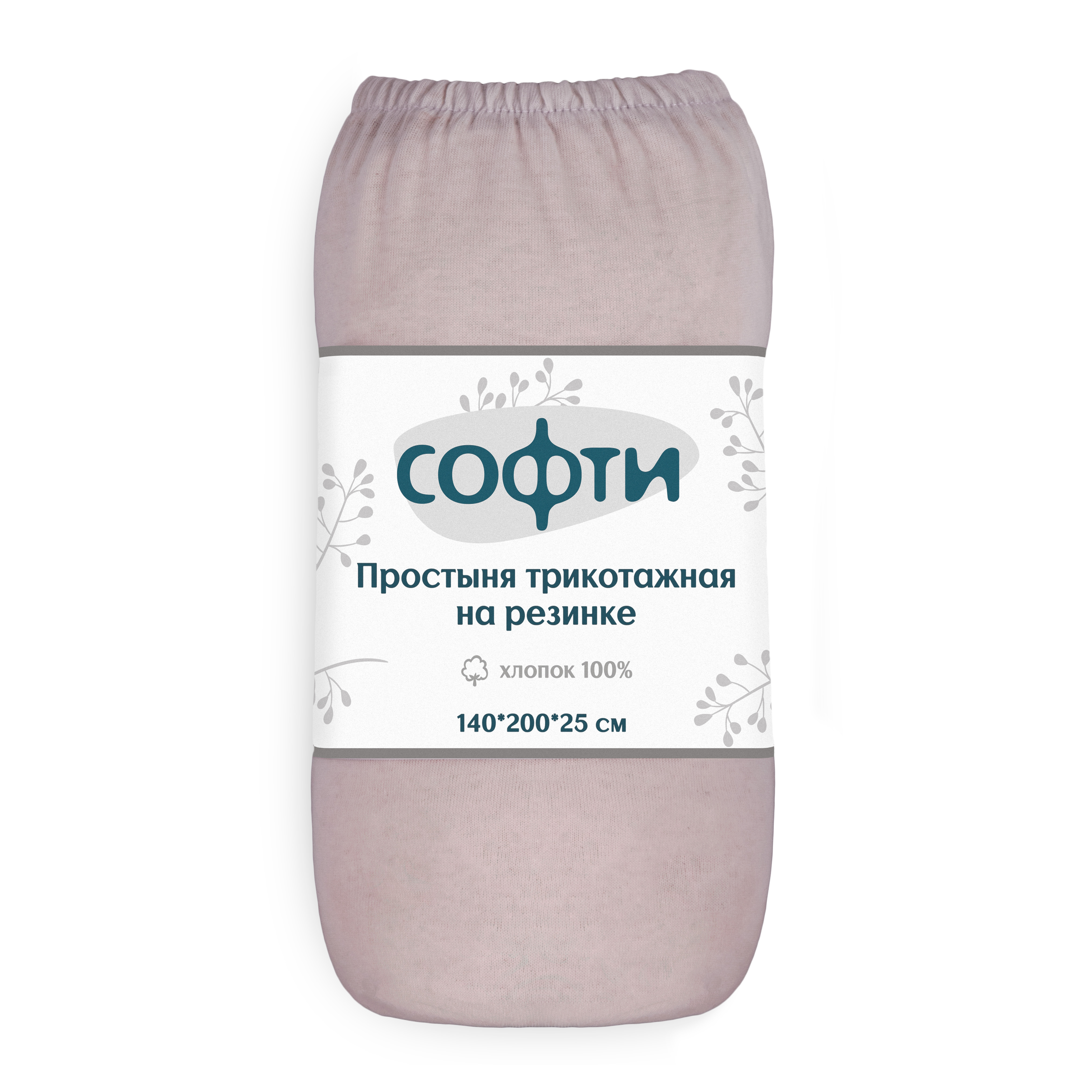 Простыня трикотажная на резинке 140х200х25см СОФТИ розовая хлопок 100%