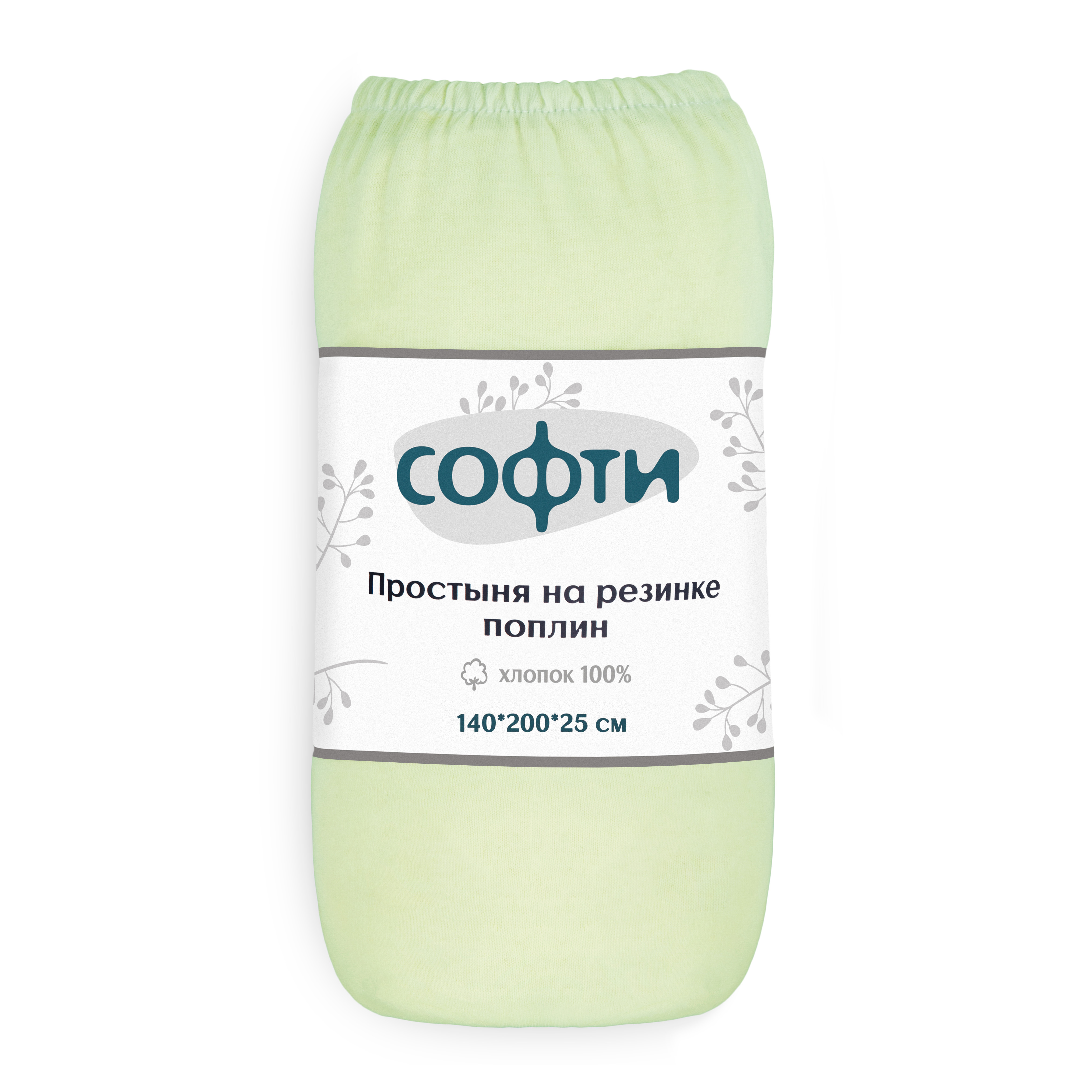 Простыня на резинке 140х200х25см СОФТИ с бурлетами 25см упаковка-ролик светло-зеленая поплин хлопок 100%