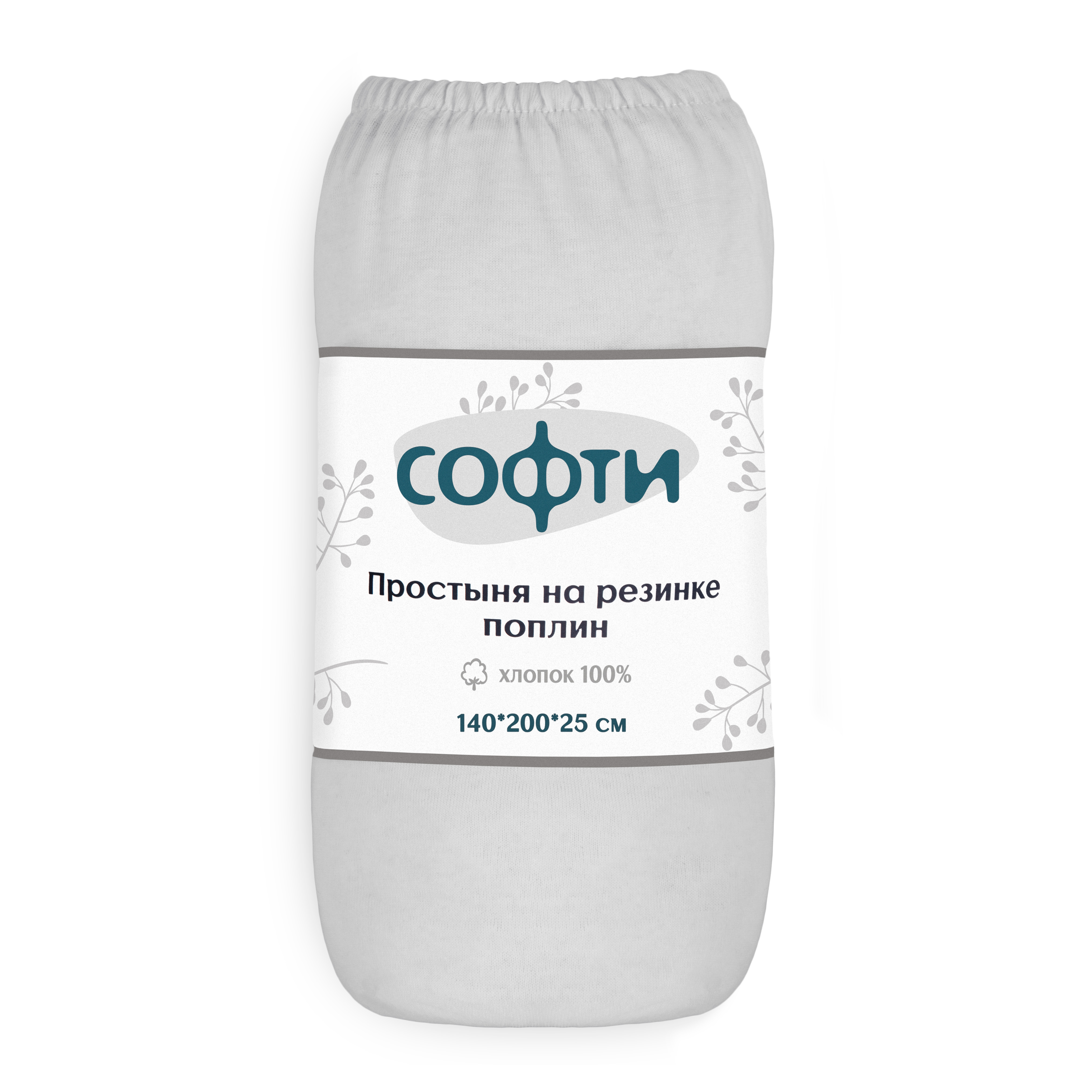 Простыня на резинке 140х200х25см СОФТИ с бурлетами 25см упаковка-ролик светло-серая поплин хлопок 100%