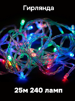 Гирлянда электрическая 25м 240 ламп Нить цветные