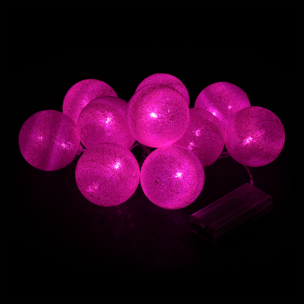 Гирлянда электрическая 1,5м(+0,5м шнур) 10 LED ламп VEGAS Нить Хлопковые шары розовый свет прозрачный провод мерцание АА-2шт (не входят в комплект)