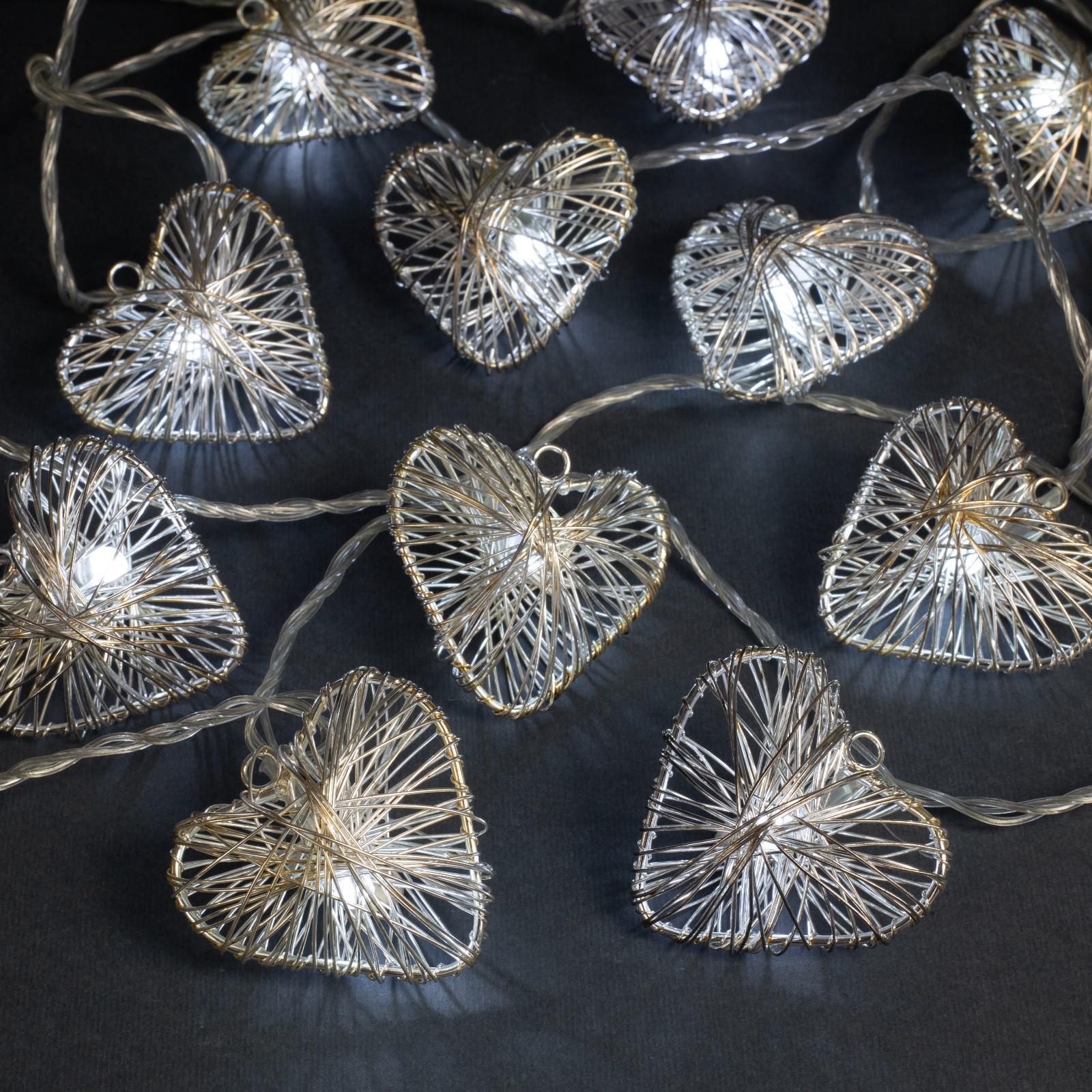 Гирлянда LUAZON LIGHTING Сердце проволока имеет насадки в виде ажурных сердечек, размером 4 см.Нить прозрачная,свечение белое.У гирлянды 8 режимов с кнопкой переключения на нужный.