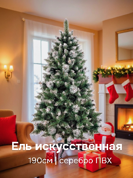 Ель искусственная 190см БИФОРЕС Люкс серебро ПВХ