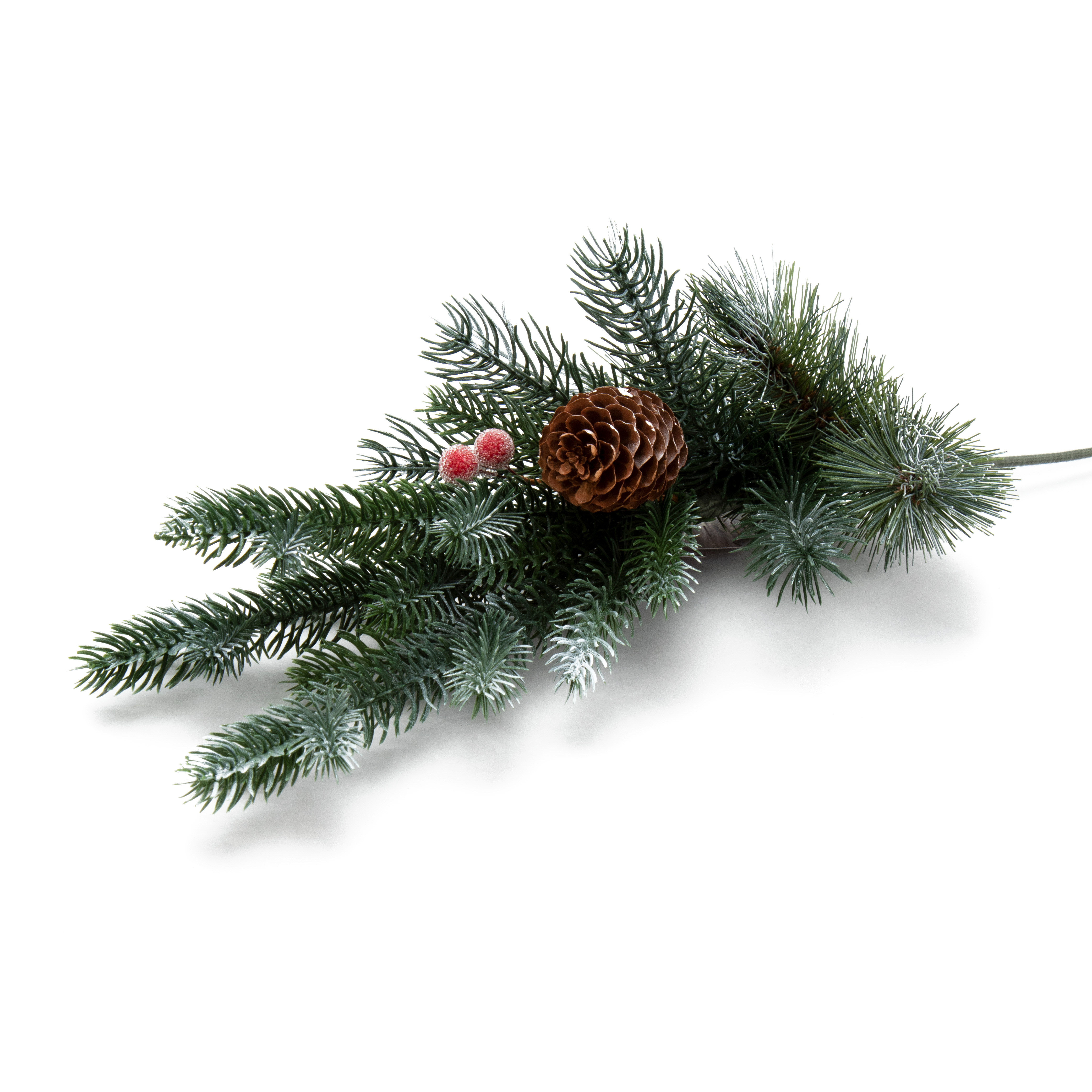 Ветка хвойная 55см MOROZCO с шишками и ягодами заснеженная литая+леска пластик