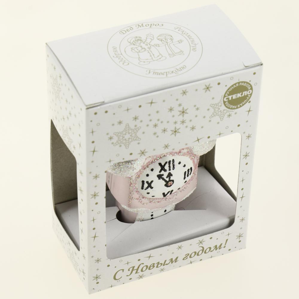 Декоративное украшение Часы 10см БИРЮСИНКА розовый стекло