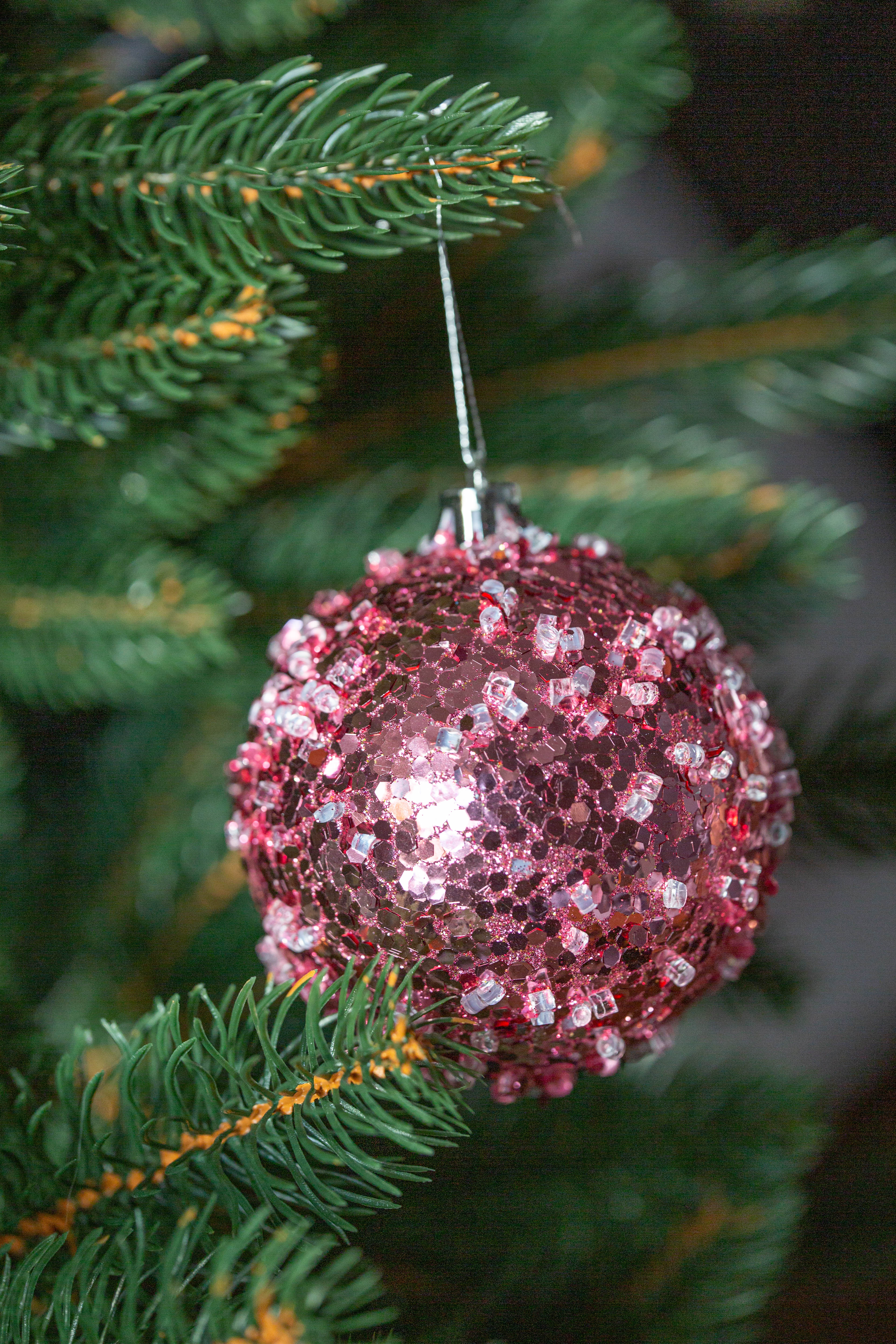 Набор новогодних шаров 3шт 8см Пайетки бусины розовая роза пластик