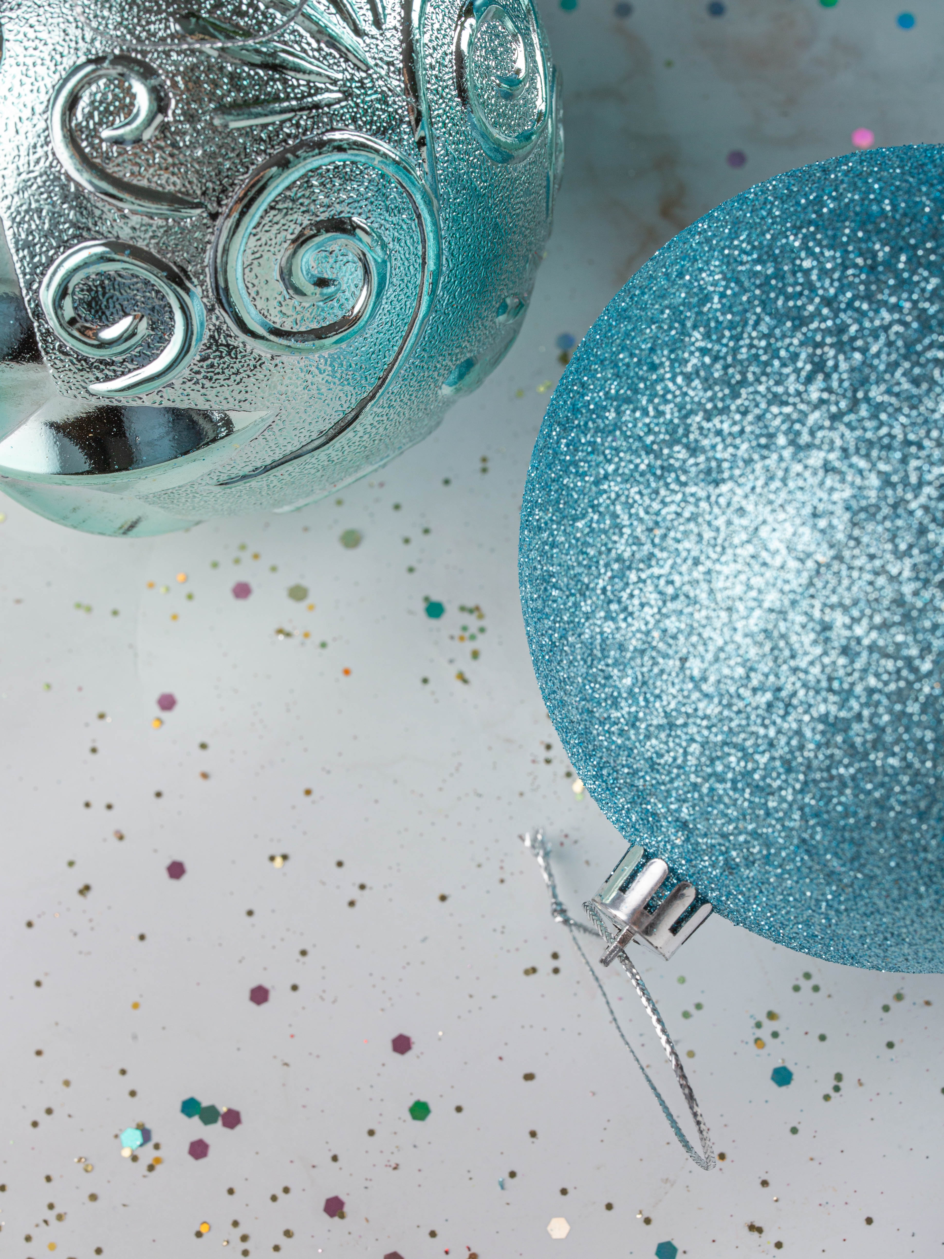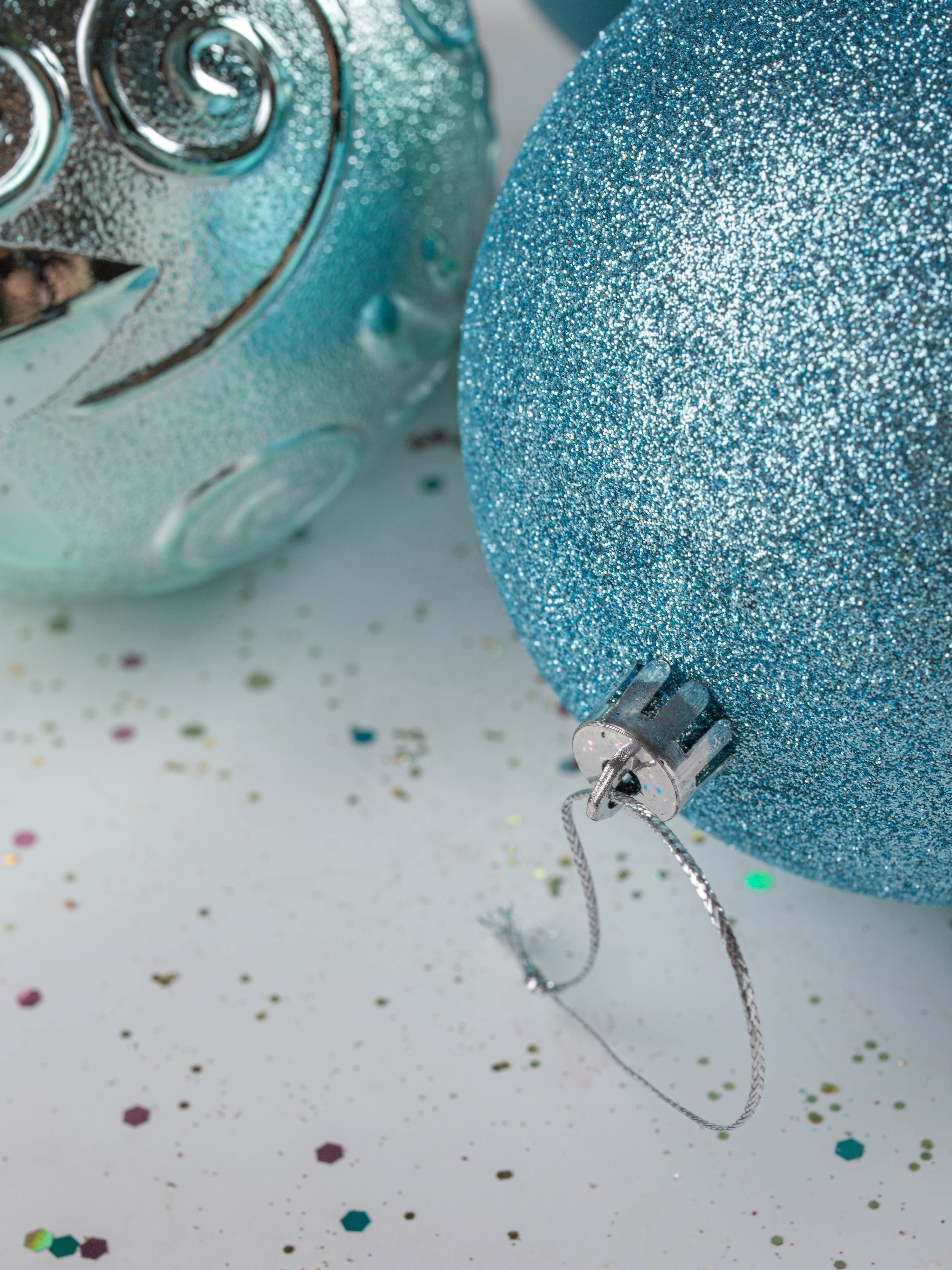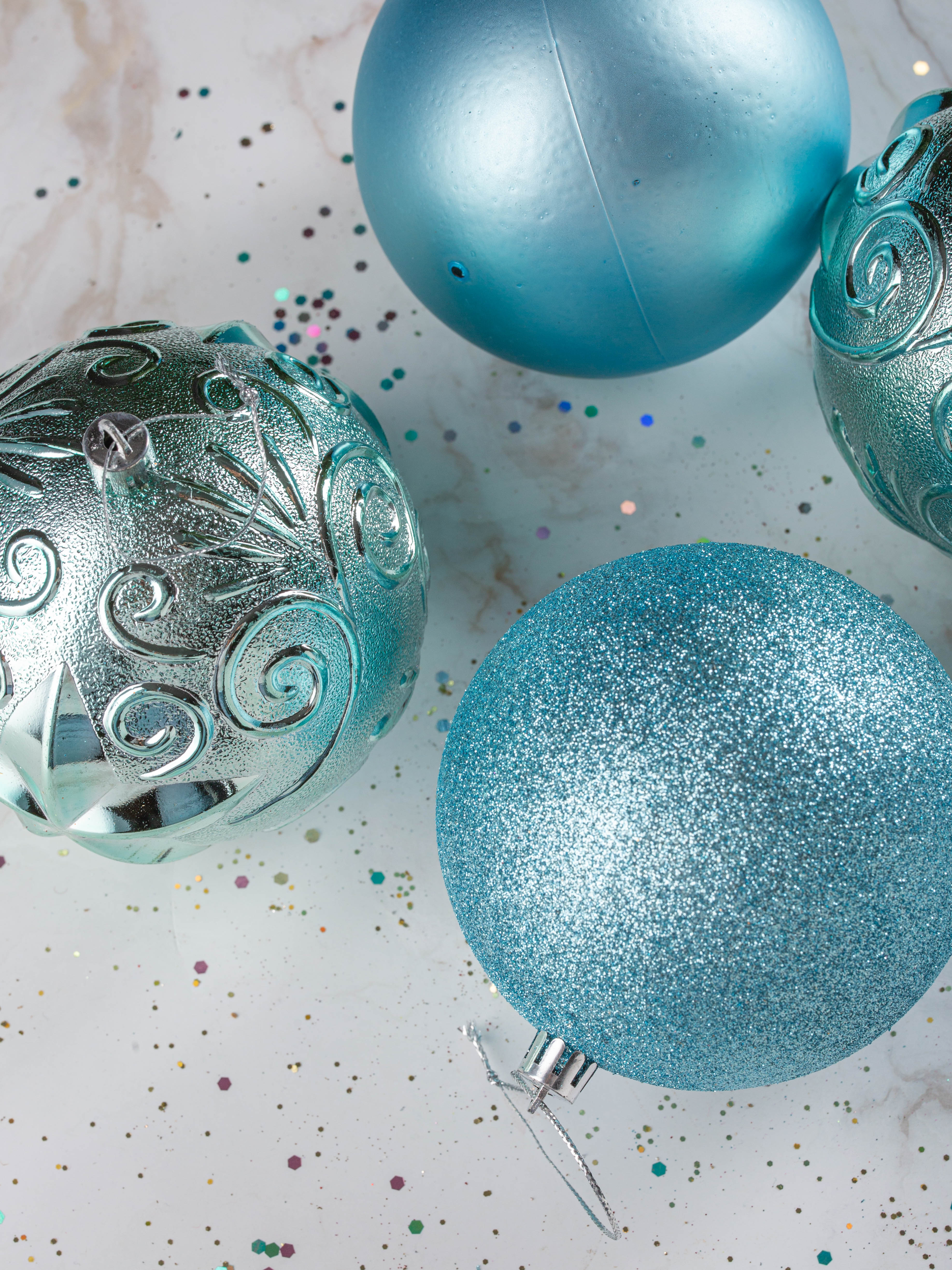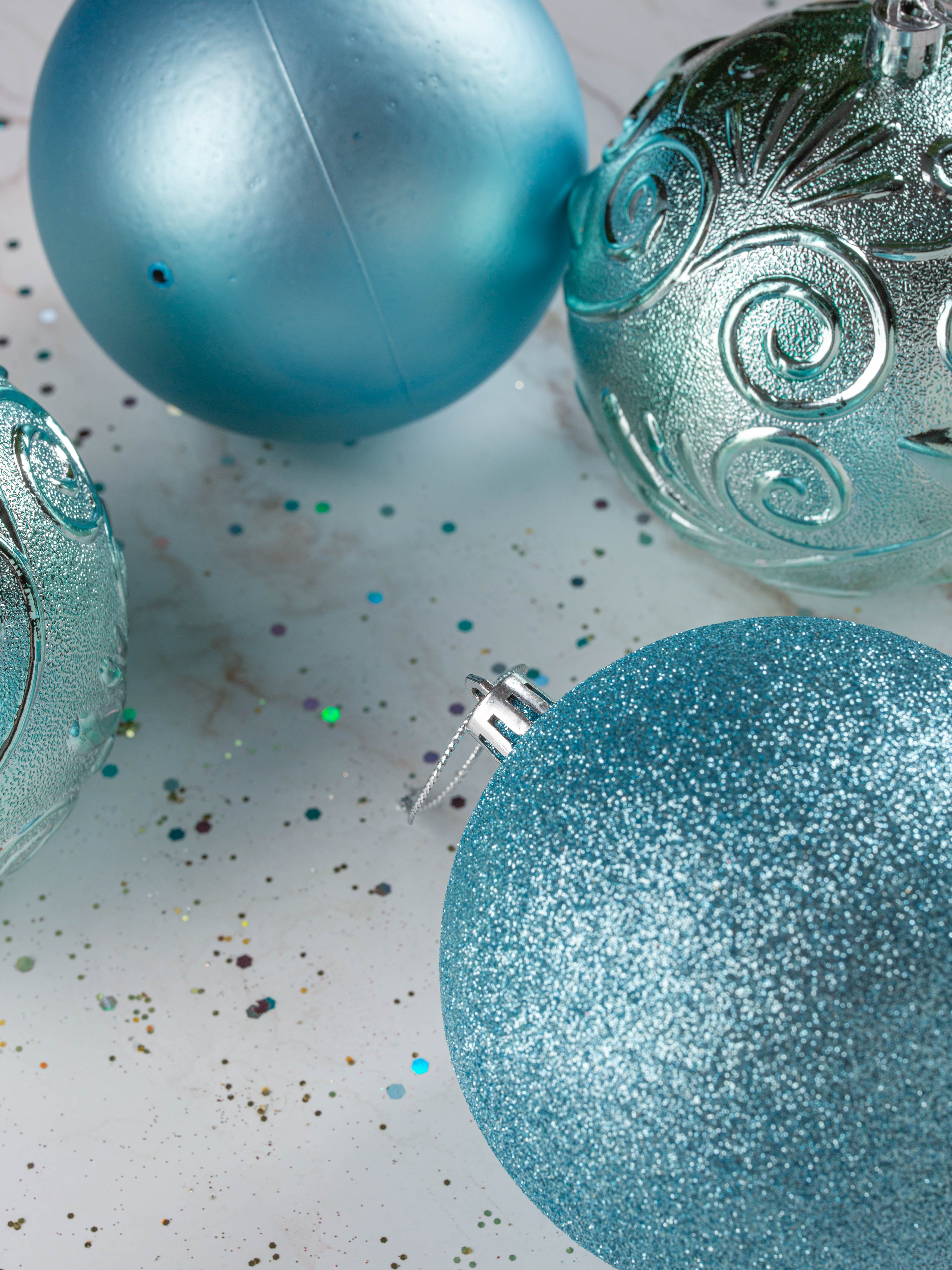 Набор украшений декоративных 4шт голубой (шар матовый 10см-1шт, шар с блестками 10см-1шт, шар с рисунком 10см-2шт)