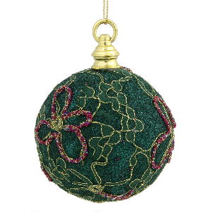 Декоративное украшение 8х8х8см Шар ткань/бисер зеленый пенопласт
